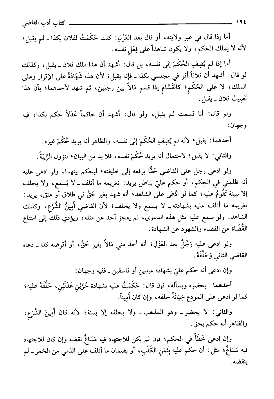 والثاني: لا يقبل؛ لاحتمال أنه يريد حكم نفسه، فلابد من البيان؛ لتزول الريبة.