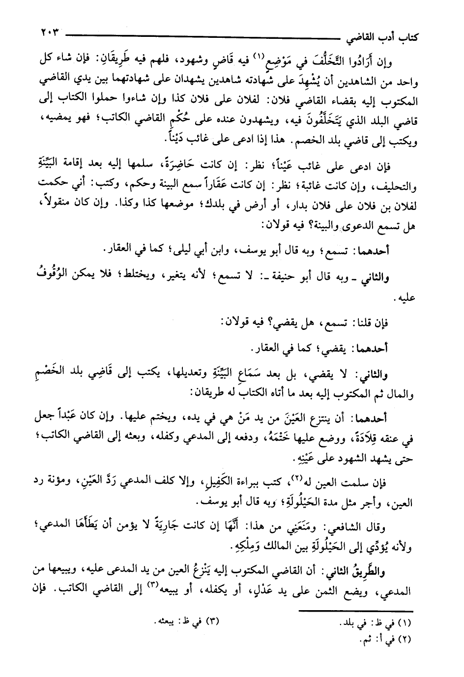 وإن أرادوا التخلف في موضع فيه قاض وشهود، فلهم فيه طريقان: فإن شاء كل واحد من الشاهدين أن يشهد على شهادته شاهدين يشهدان على شهادتهما بين يدي القاضي المكتوب إليه بقضاء القاضي فلان: لفلان على فلان كذا وإن شاءوا حملوا الكتاب إلى قاضي البلد الذي يتخلفون فيه، ويشهدون عنده على حكم القاضي الكاتب؛ فهو يمضيه، ويكتب إلى قاضي بلد الخصم. هذا إذا ادعى على غائب ديناً.