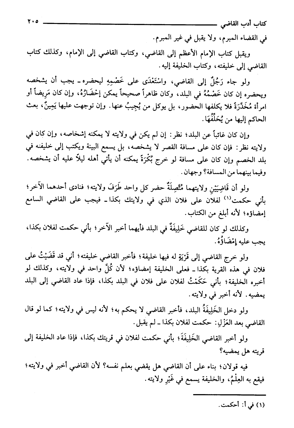 ويقبل كتاب الإمام الأعظم إلى القاضي، وكتاب القاضي إلى الإمام، وكذلك كتاب القاضي إلى خليفته، وكتاب الخليفة إليه.