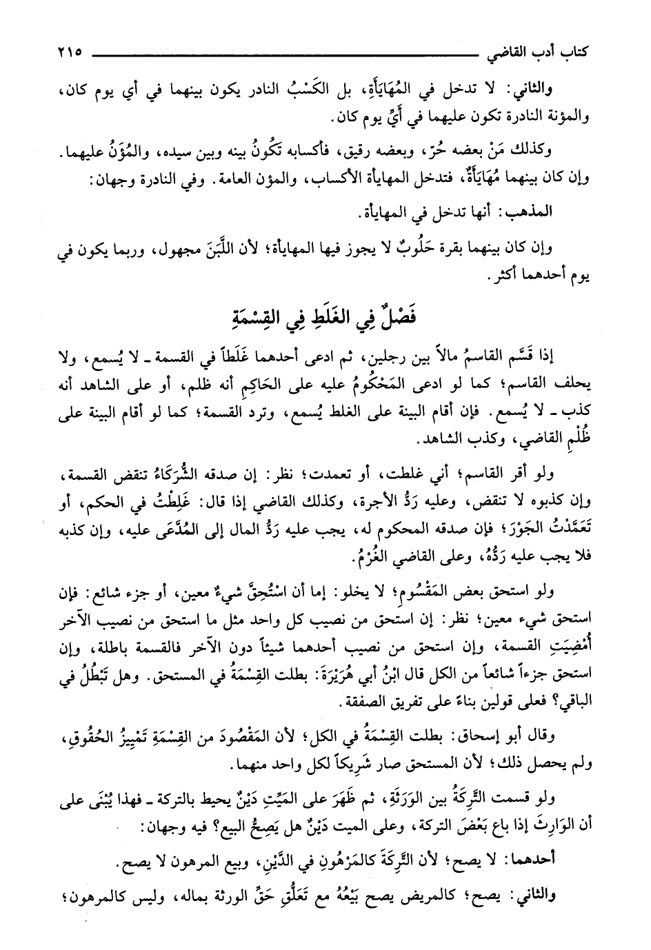إذا قسم القاسم مالاً بين رجلين، ثم ادعى أحدهما غلطاً في القسمة- لا يسمع، ولا يحلف القاسم؛ كما لو ادعى المحكوم عليه على الحاكم أنه ظلم، أو على الشاهد أنه كذب- لا يسمع. فإن أقام البينة على الغلط يسمع، وترد القسمة، كما لو أقام البينة على ظلم القاضي، وكذب الشاهد.