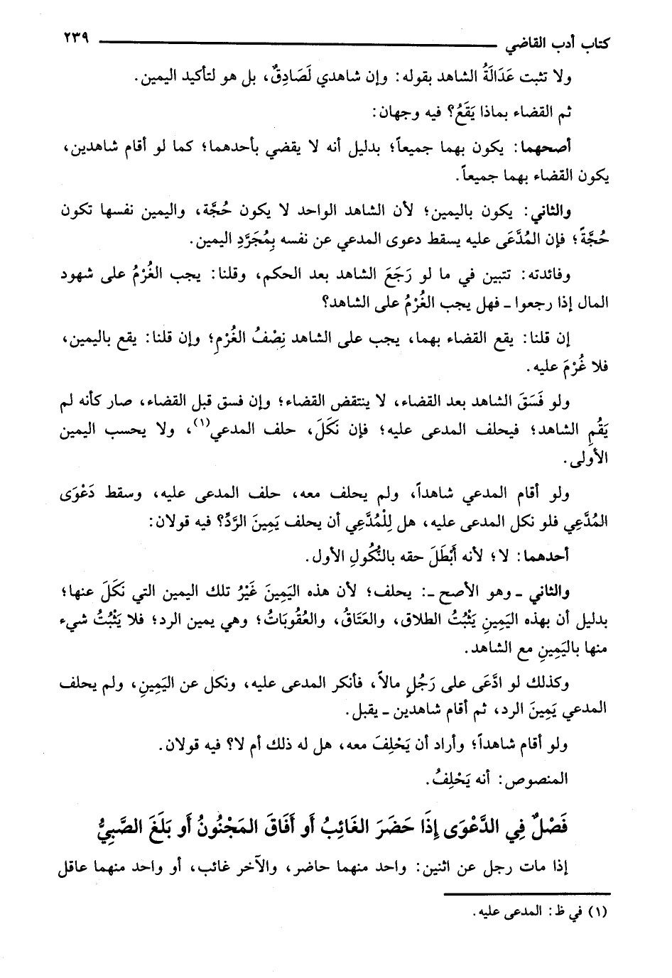 والثاني: يكون باليمين؛ لأن الشاهد الواحد لا يكون حجة، واليمين نفسها تكون حجة؛ فإن المدعى عليه يسقط دعوى المدعي عن نفسه بمجرد اليمين.