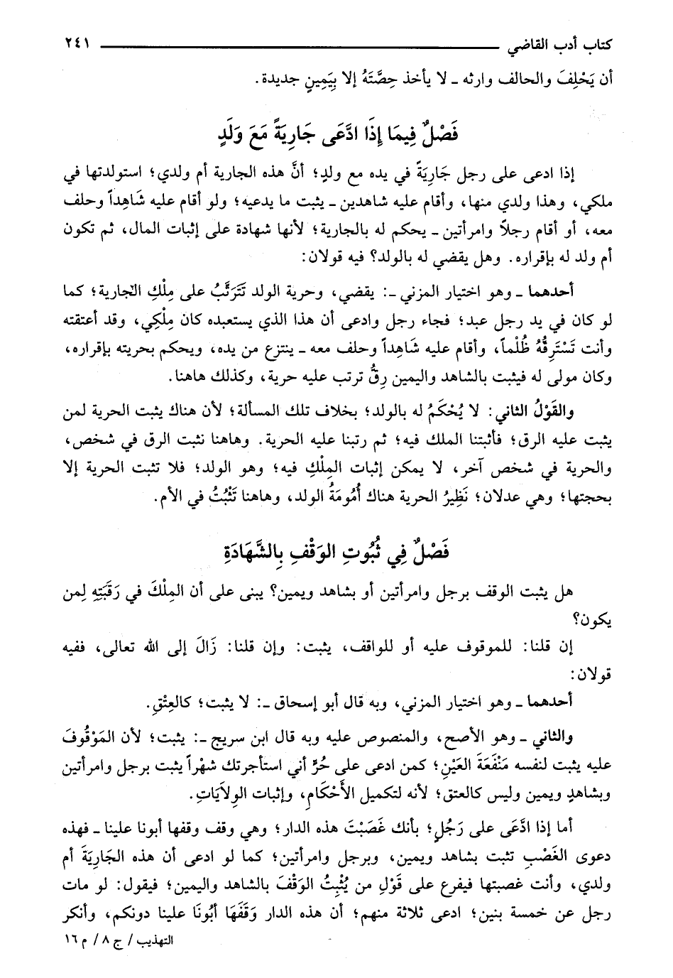 إذا ادعى على رجل جارية ي يده مع ولد؛ أن هذه الجارية أم ولدي؛ استولدتها في ملكي، وهذا ولدي منها، وأقام عليه شاهدين- يثبت ما يدعيه؛ ولو أقام عليه شاهداً وحلف معه، أو أقام رجلاً وامرأتين- يحكم له بالجارية؛ لأنها شهادة على إثبات المال، ثم تكون أم ولد له بإقراره. وهل يقضي له بالولد؟ فيه قولان: