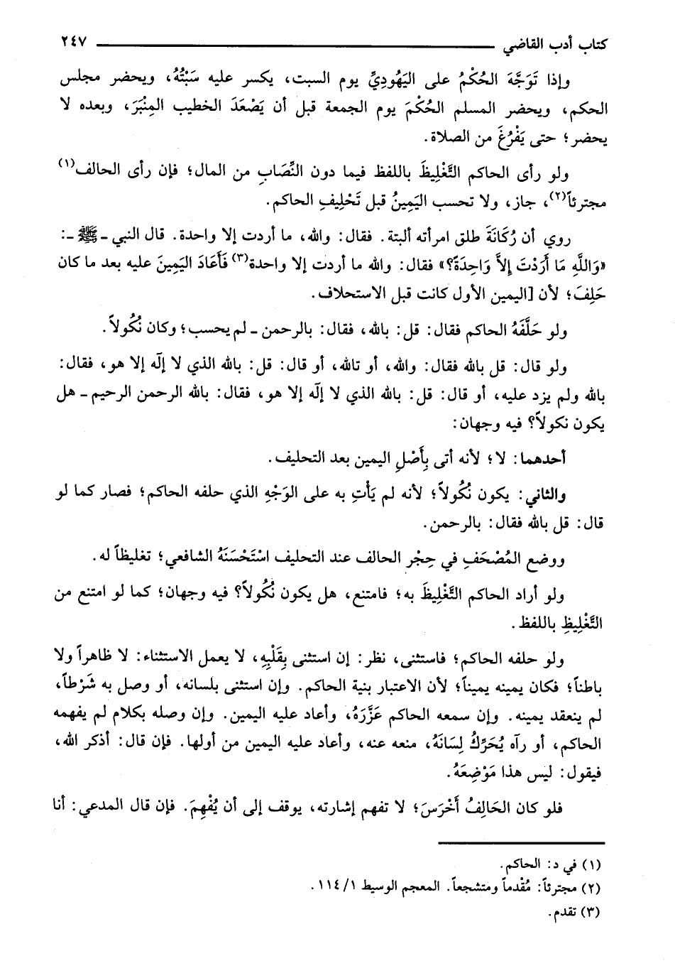 وإذا توجه الحكم على اليهودي يوم السبت، يكسر عليه سبته، ويحضر مجلس الحكم، ويحضر المسلم الحكم يوم الجمعة قبل أن يصعد الخطيب المنبر، وبعده لا يحضر؛ حتى يفرغ من الصلاة.