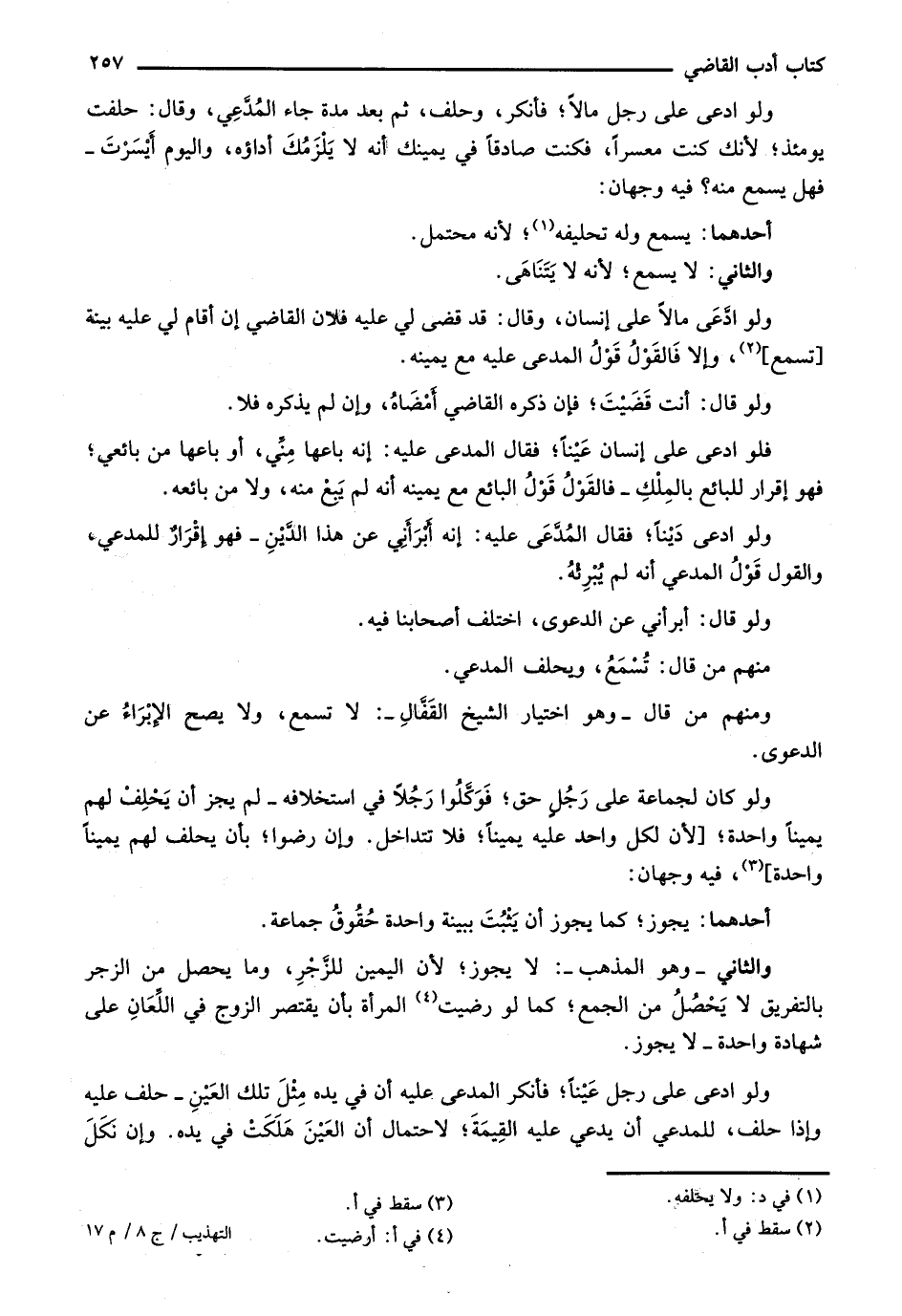 ولو ادعى على رجل عيناً؛ فأنكر المدعى عليه أن في يده مثل تلك العين- حلف عليه وإذا حلف، للمدعي أن يدعي عليه القيمة؛ لاحتمال أن العين هلكت في يده. وإن نكل
