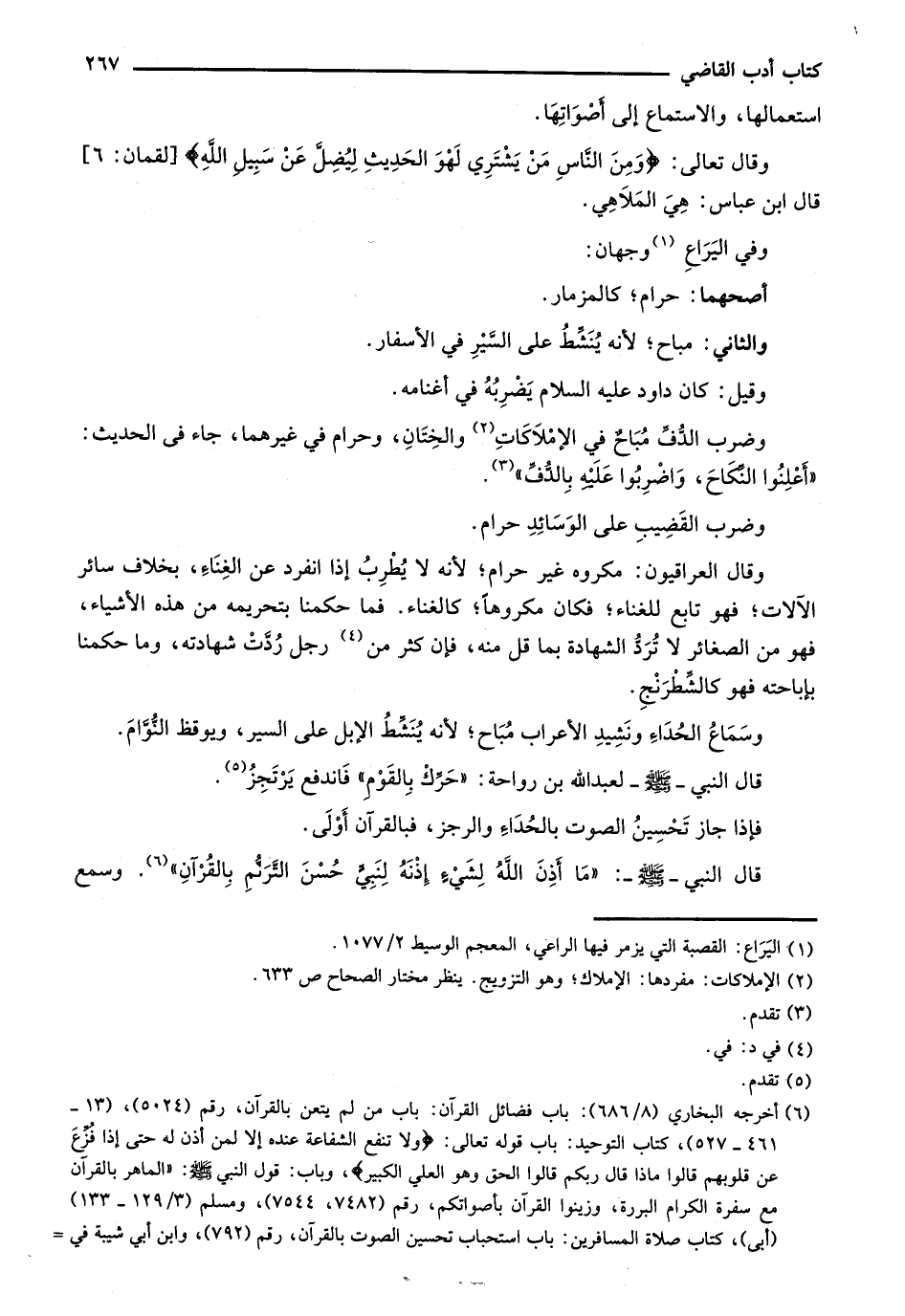 وقال تعالى: {وَمِنْ النَّاسِ مَنْ يَشْتَرِي لَهْوَ الْحَدِيثِ لِيُضِلَّ عَنْ سَبِيلِ اللَّهِ} [لقمان: 6] قال ابن عباس: هي الملاهي.