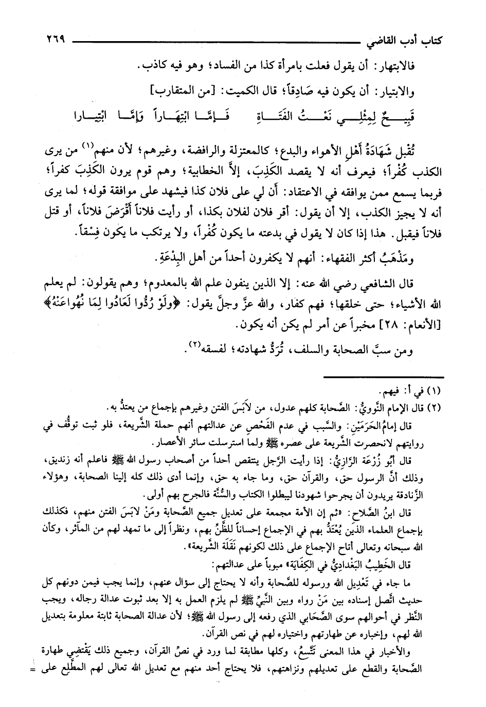 ومن سب الصحابة والسلف، ترد شهادته، لفسقه.