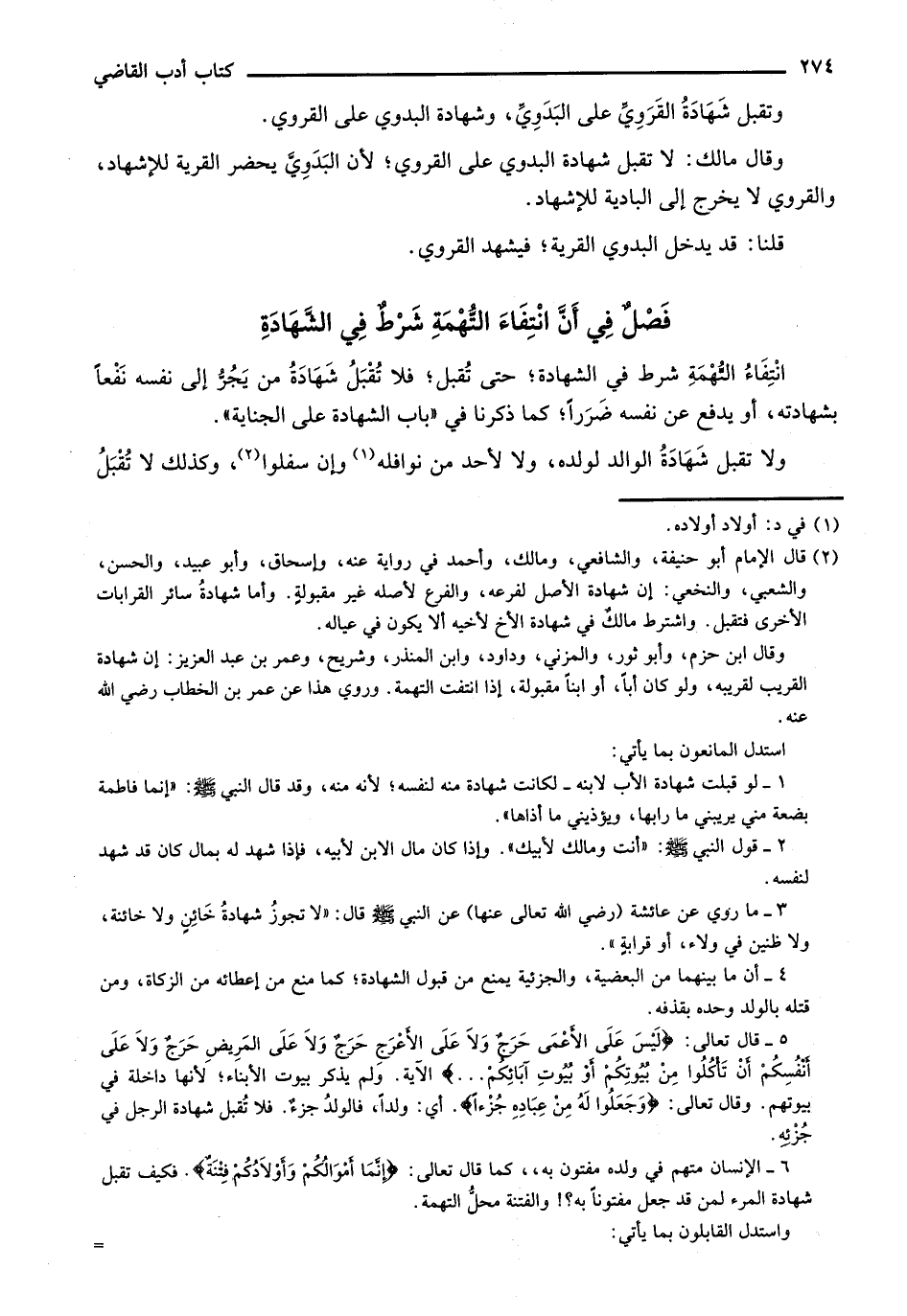 انتفاء التهمة شرط في الشهادة؛ حتى تقبل؛ فلا تقبل شهادة من يجر إلى نفسه نفعاً بشادته، أو يدفع عن نفسه ضرراً؛ كما ذكرنا في "باب الشهادة على الجناية".