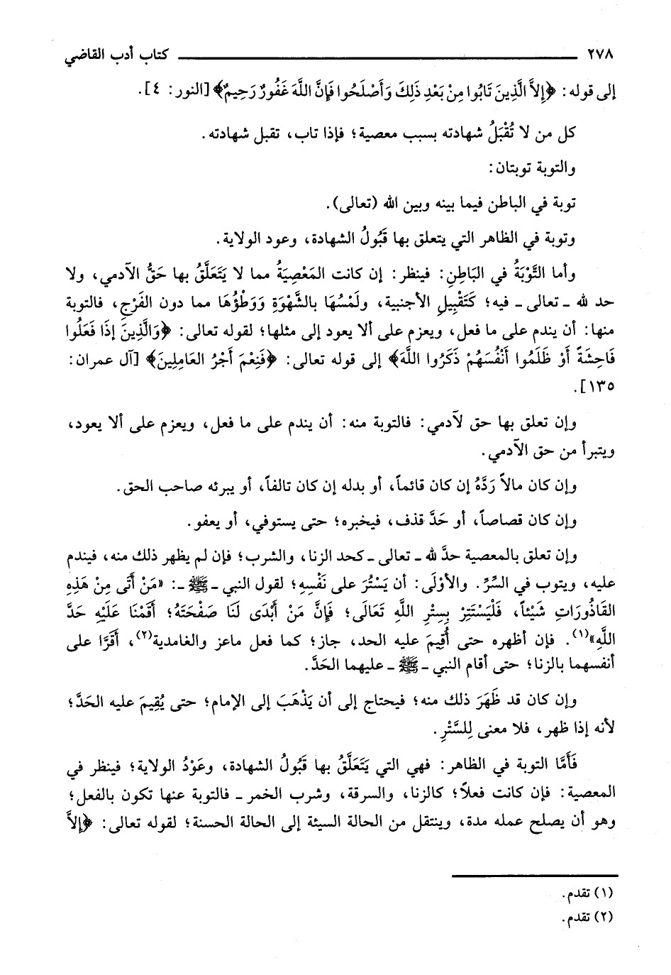 وتوبة في الظاهر التي يتعلق بها قبول الشهادة، وعود الولاية.