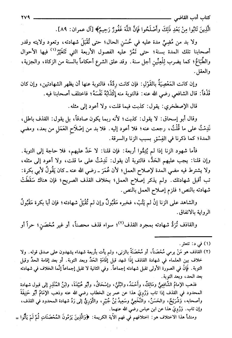 ولا بد من مضي مدة عليه في حسن الحال؛ حتى تقبل شهادته، وتعود ولايته وقدر أصحابنا تلك المدة بسنة؛ حتى تمر عليه الفصول الأربعة التي تتغير فيها الأحوال والطباع؛ كما يضرب للعنين أجل سنة. وقد علق الشرع أحكاماً بالسنة من الزكاة، والجزية، والعقل.