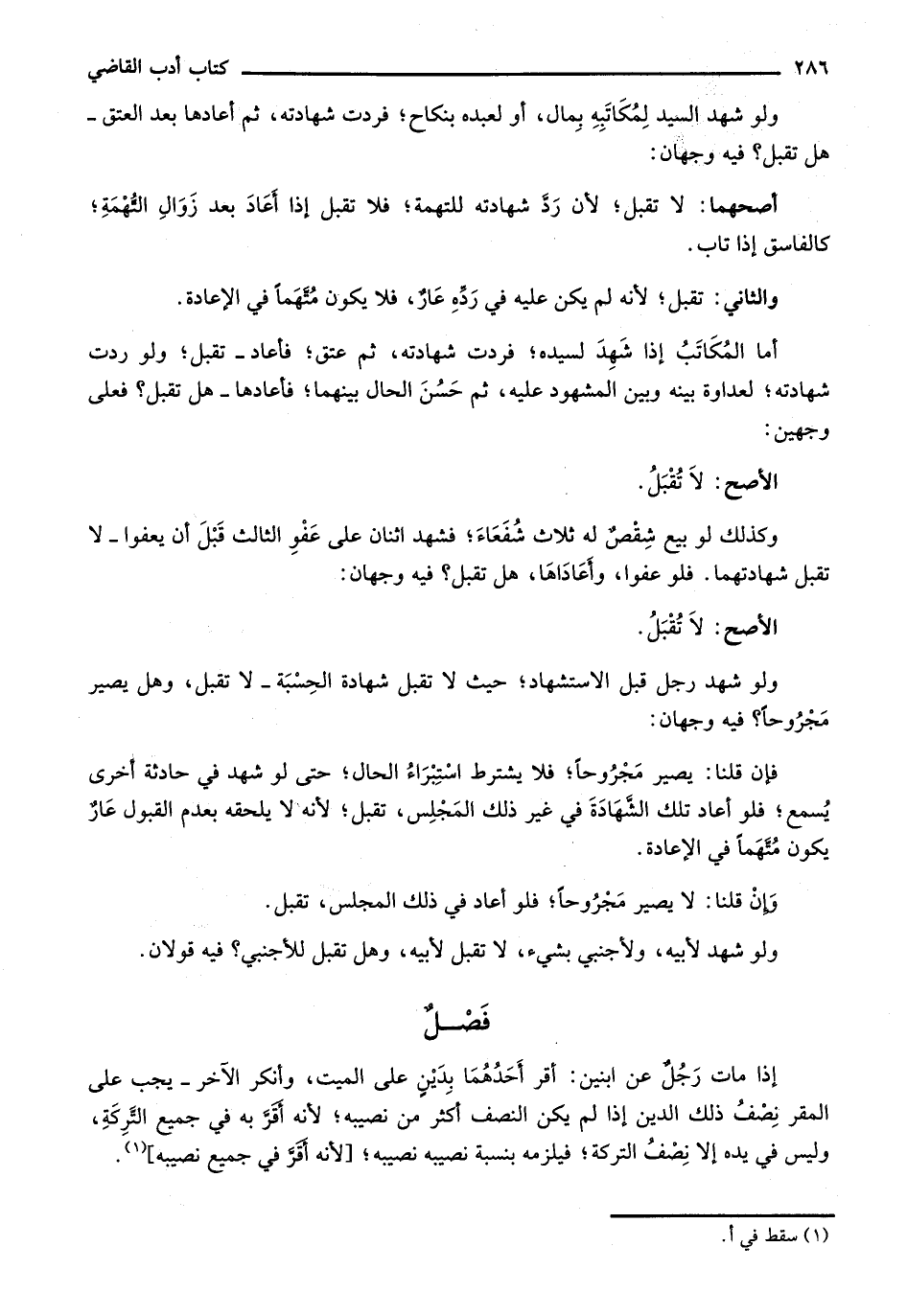 والثاني: تقبل؛ لأنه لم يكن عليه في رده عار، فلا يكون متهماً في الإعادة.