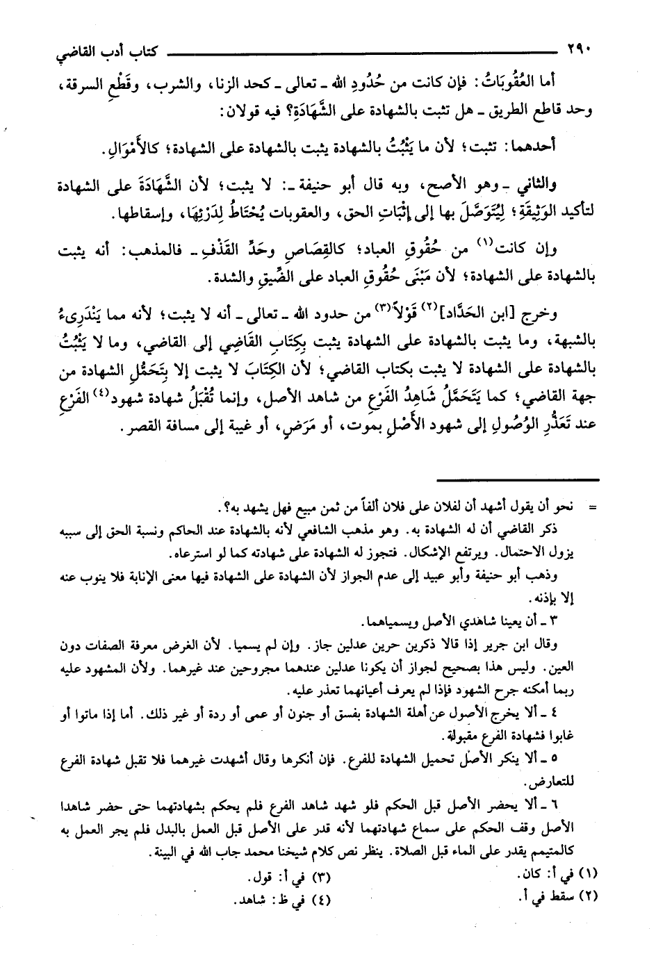 أما العقوبات: فإن كانت من حدود الله- تعالى- كحد الزنا، والشرب، وقطع السرقة، وحد قاطع الطريق- هل تثبت بالشهادة على الشهادة؟ فيه قولان: