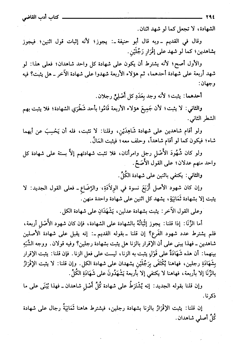 أما الزنا: إذا قلنا: يجوز إثباته بالشهادة على الشهادة، فإن كان شهود الأصل أربعة، فلم يشترط عدد شهود الفرع؟ إن قلنا- بقوله القديم-: إنه يقبل على شهادة الألين شاهدين- فهذا يبنى على أن الإقرار بالزنا هل يثبت بشهادة رجلين؟ وفيه قولان. ووجه الشبه بينهما: أن هذه شهادة على قول يثبت به الزنا، ليست على فعل الزنا. فإن قلنا: يثبت الإقرار بشهادة رجلين، فهاهنا يكتفي برجلين يشهدان على شهادة الكل. وإن قلنا: لا يثبت الإقرار بالزنا إلا بأربعة، فهاهنا لا يكتفي إلا بأربعة يشهدون على شهادة الكل.