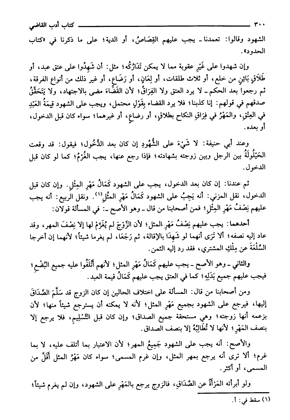 وإن شهدوا على غير عقوبة مما لا يمكن تداركه؛ مثل: أن شهدوا على عتق عبد أو طلاق بائن من خلع، أو ثلاث طلقات، أو لعان، أو رضاع، أو غير ذلك من أنواع الفرقة، ثم رجعوا بعد الحكم- لا يرد العتق ولا الفراق؛ لأن القضاء مضى بالاجتهاد، ولا يتحقق صدقهم في قولهم: إنا كذبنا؛ فلا يرد القضاء بقول محتمل، ويجب على الشهود قيمة العبد في العتق، والمهر في فراق النكاح بطلاق، أو رضاع، أو غيرهما؛ سواء كان قبل الدخول، أو بعده.