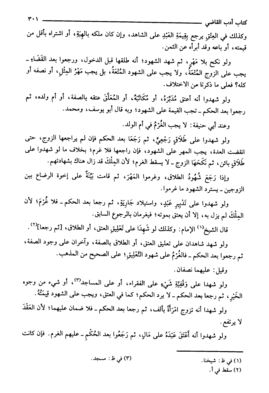 ولو شهدوا أنه أعتق مدبرة، أو مكاتبه، أو المعلق عتقه بالصفة، أو أم ولده، ثم رجعوا بعد الحكم- تجب القيمة على الشهود؛ وبه قال أبو يوسف، ومحمد.
