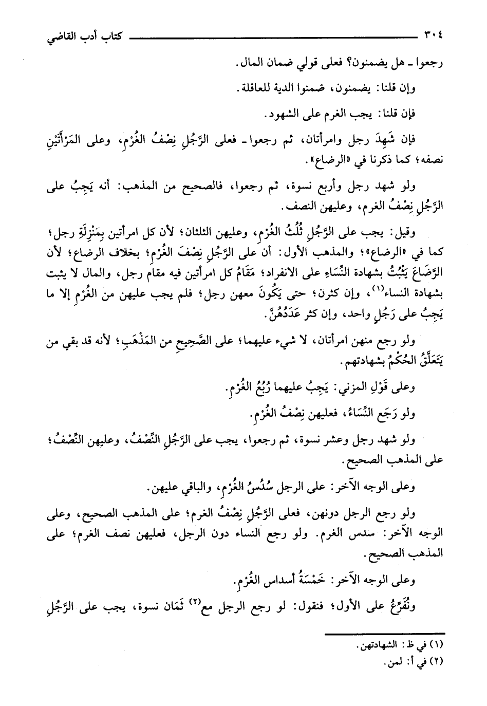 ولو شهد رجل وعشر نسوة، ثم رجعوا، يجب على الرجل النصف، وعليهن النصف؛ على المذهب الصحيح.
