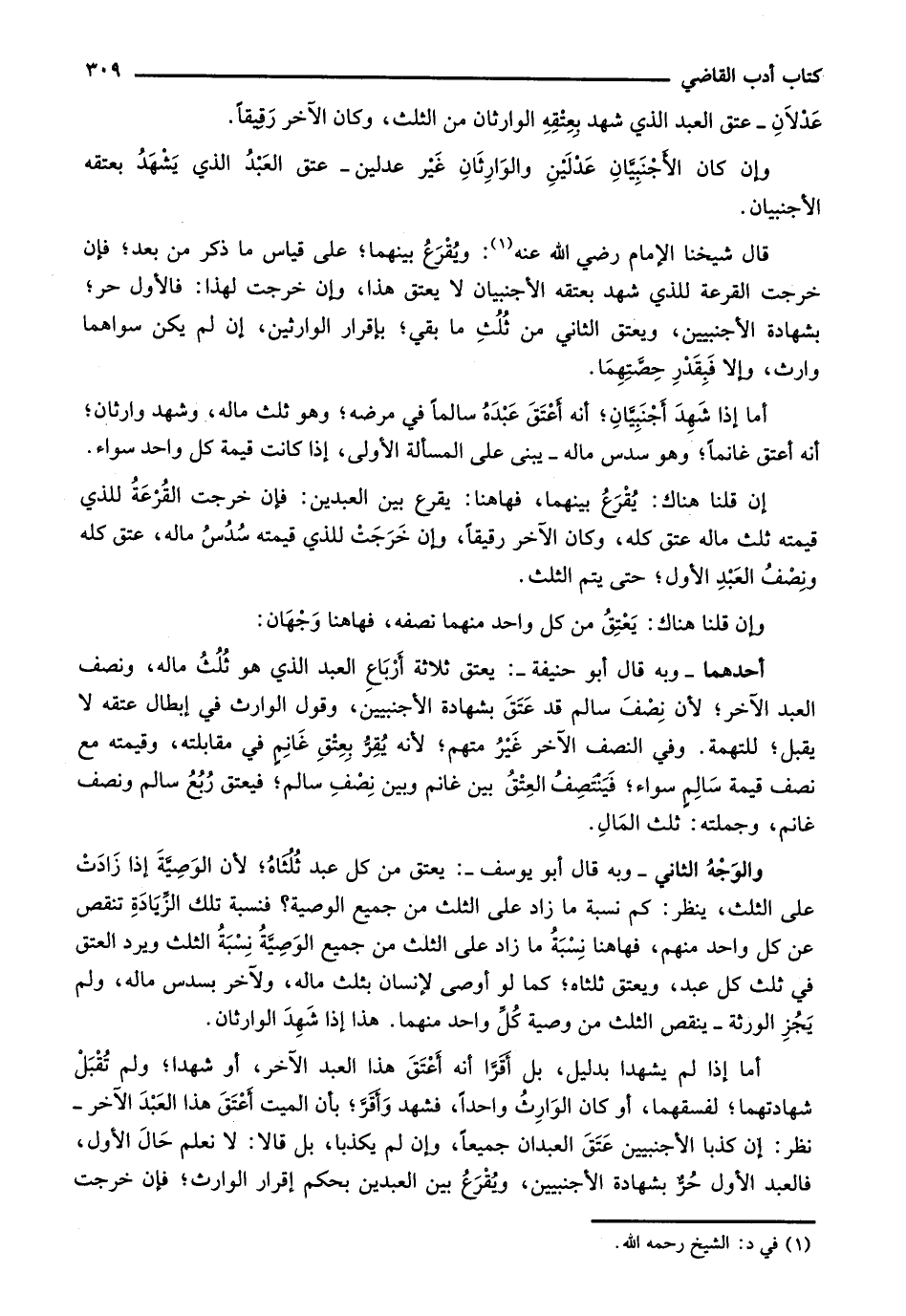 عدلان- عتق العبد الذي شهد بعتقه الوارثان من الثلث، وكان الآخر رقيقاً.