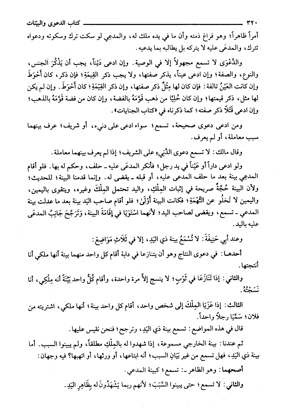 وعند أبي حنيفة: لا تسمع بينة ذي اليد، إلا في ثلاث مواضع: