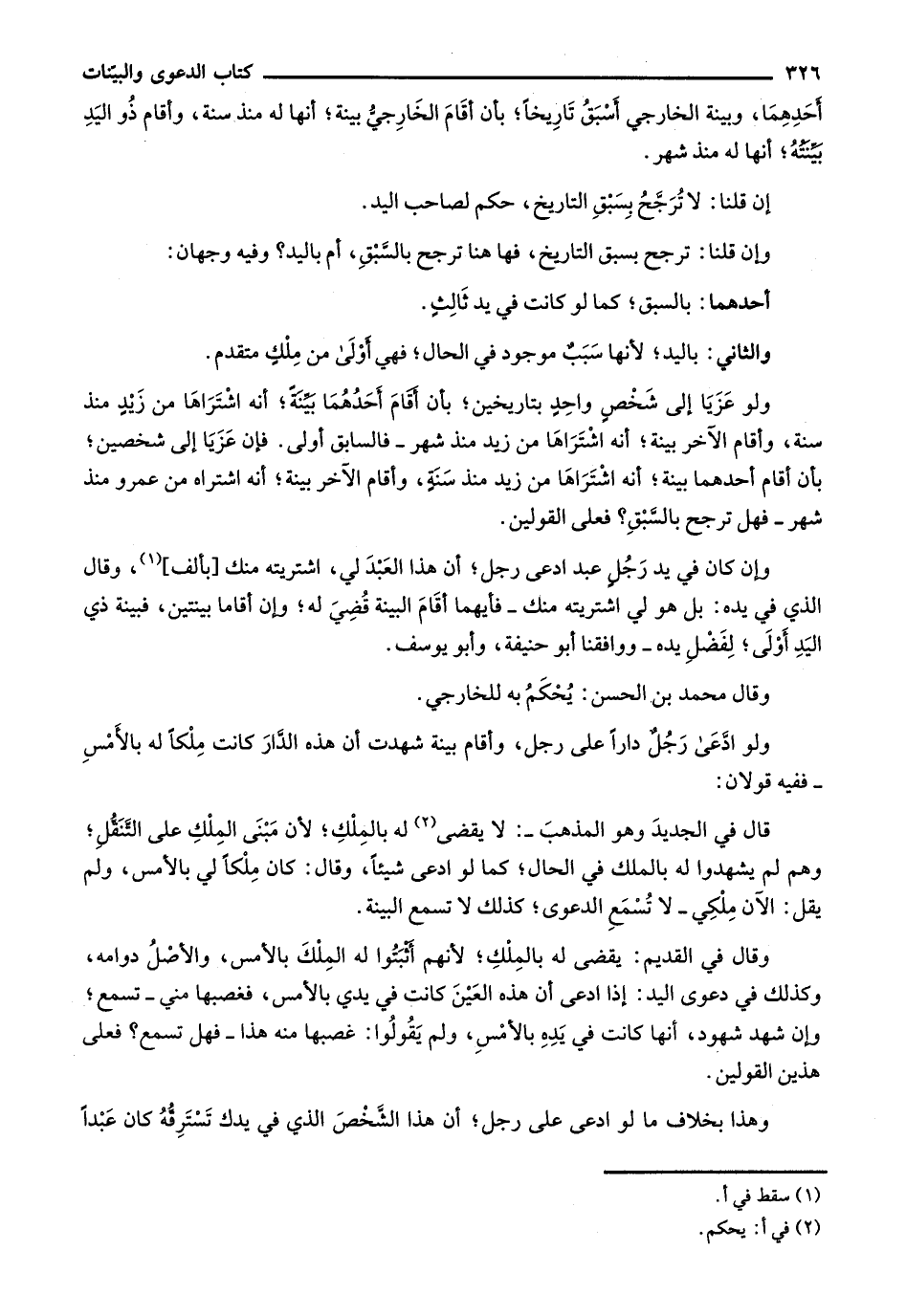 أحدهما، وبينة الخارجي أسبق تاريخاً، بأن أقام الخارجي بينة؛ أنها له منذ سنة، وأقام ذو اليد بينته؛ أنها له منذ شهر.