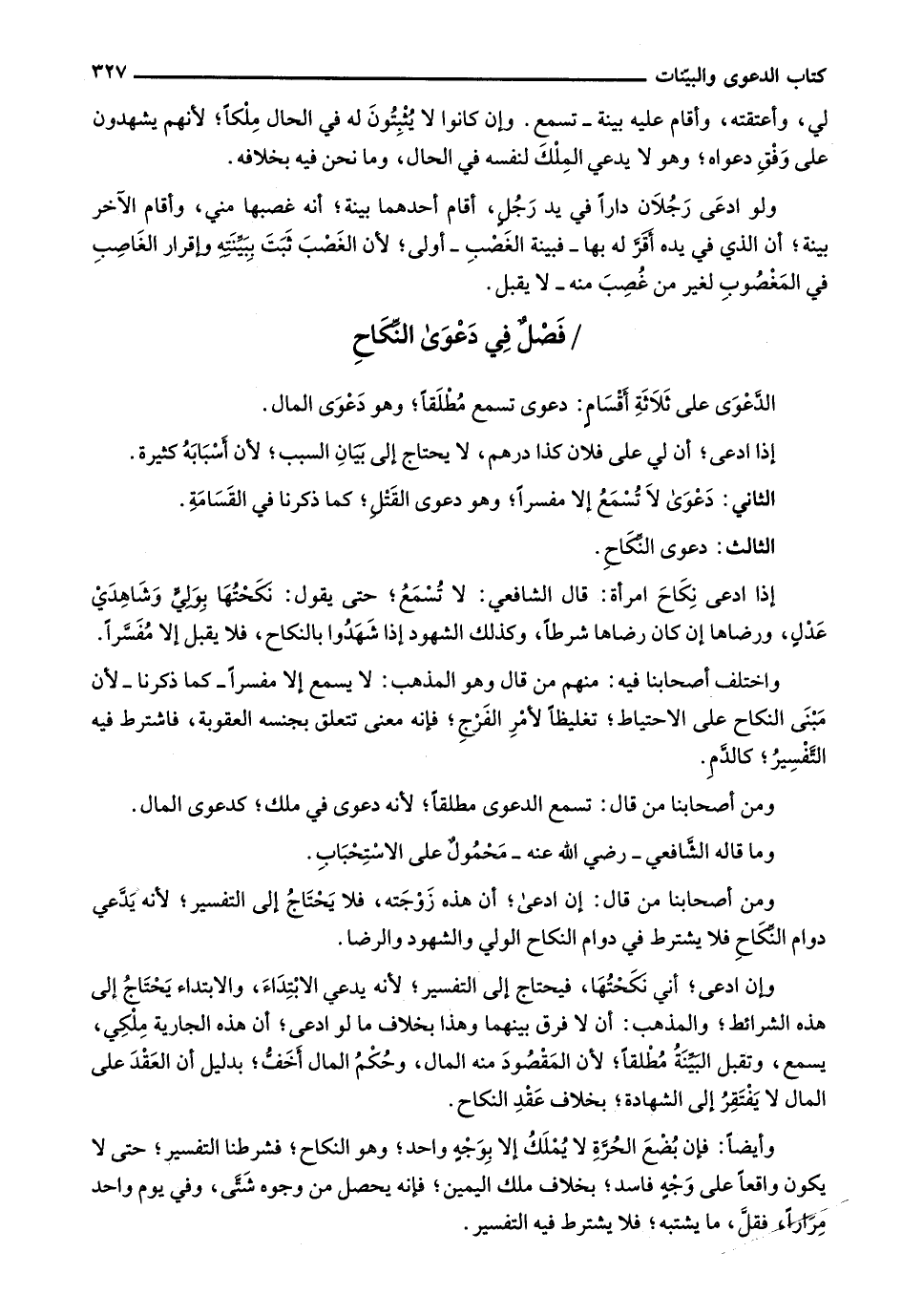 وإن ادعى؛ أني نكحتها، فيحتاج إلى التفسير؛ لأنه يدعي الابتداء، والابتداء يحتاج إلى هذه الشرائط؛ والمذهب: أن لا فرق بينهما وهذا بخلاف ما لو ادعى؛ أن هذه الجارية ملكي، يسمع، وتقبل البينة مطلقاً؛ لأن المقصود منه المال، وحكم المال أخف؛ بدليل أن العقد على المال لا يفتقر إلى الشهادة؛ بخلاف عقد النكاح.