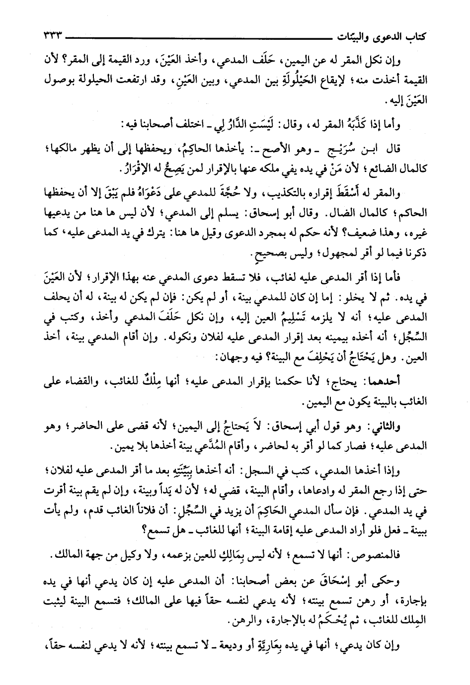 فأما إذا أقر المدعي عليه لغائب، فلا تسقط دعوى المدعي عنه بهذا الإقرار؛ لأن العين في يده. ثم لا يخلو: إما إن كان للمدعي بينة، أو لم يكن: فإن لم يكن له بينة، له أن يحلف المدعي عليه؛ أنه لا يلزمه تسليم العين إليه، وإن نكل حلف المدعي وأخذ، وكتب في السجل؛ أنه أخذه بيمينه بعد إقرار المدعي عليه لفلان ونكوله. وإن أقام المدعي بينة، أخذ العين. وهل يحتاج أن يحلف مع البينة؟ فيه وجهان: