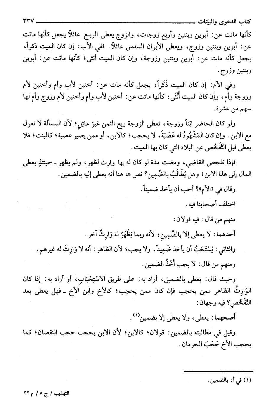 فإذا تفحص القاضي، ومضت مدة لو كان له بها وارث لظهر، ولم يظهر- حينئذ يعطى المال إلى هذا الابن؛ وهل يطالب بالضمين؟ نص ها هنا أنه يعطى إليه بالضمين.