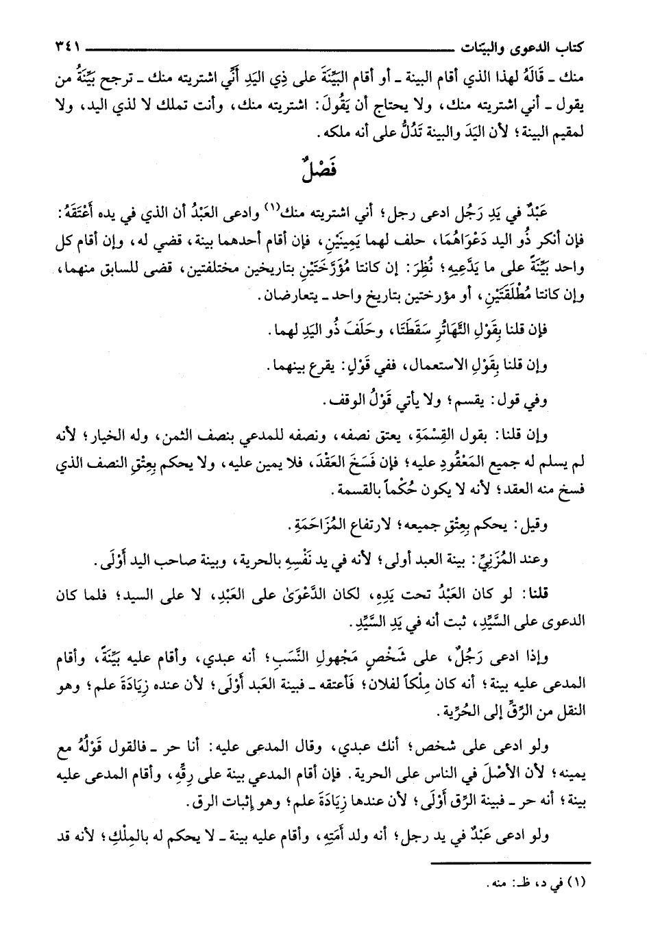 ولو ادعى على شخص؛ أنك عبدي، وقال المدعي عليه: أنا حر- فالقول قوله مع يمينه؛ لأن الأصل في الناس على الحرية. فإن أقام المدعي بينة على رقه، وأقام المدعي عليه بينة؛ أنه حر- فبينة الرق أولى؛ لأن عندها زيادة علم؛ وهو إثبات الرق.