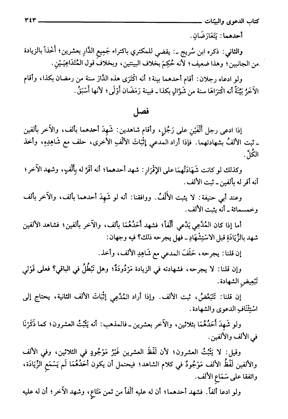 وقيل: لا يثبت العشرون؛ لأن لفظ العشرين غير موجود في الثلاثين، وفي الألف والألفين لفظ الألف موجود في كلام الشاهد؛ فيحتمل أن يكون أحدهما لم يسمع الزيادة، واتفقا على سماع الألف.