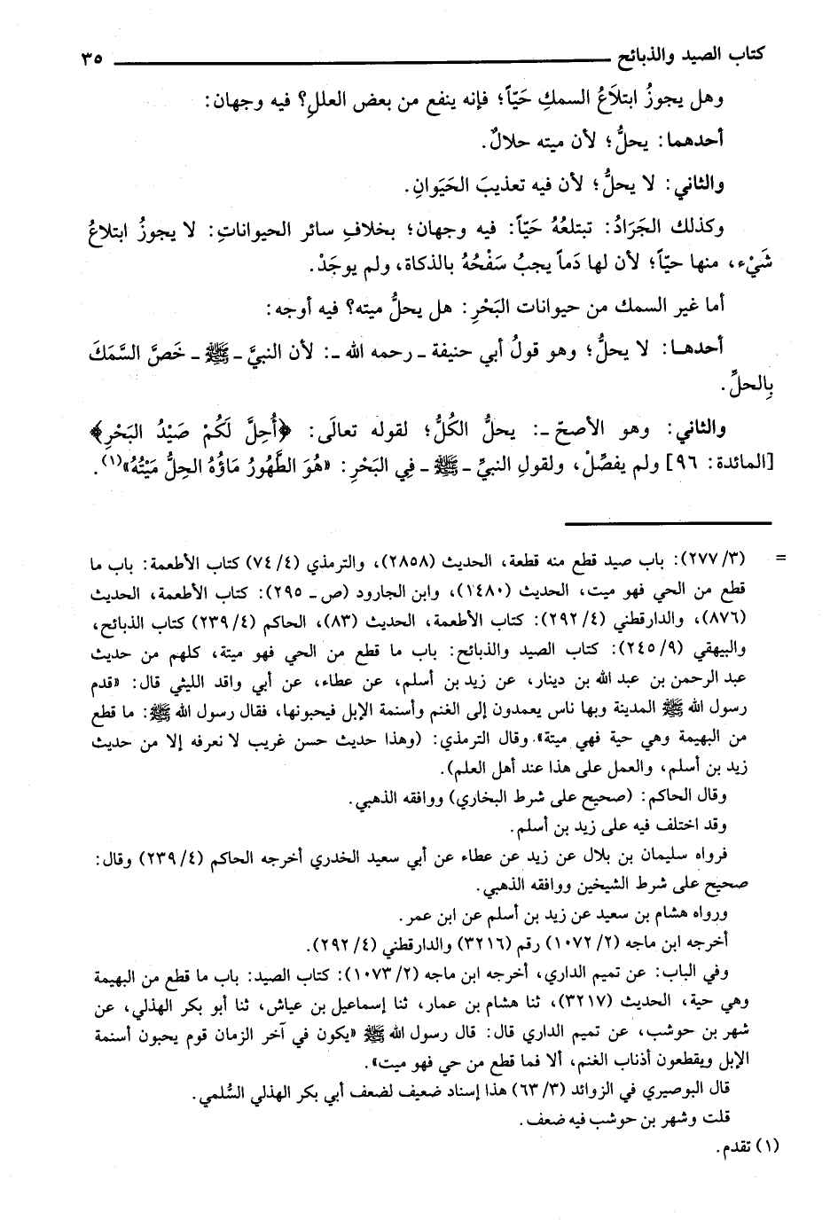 أما غير السمك من حيوانات البحر: هل يحل ميته؟ فيه أوجه: