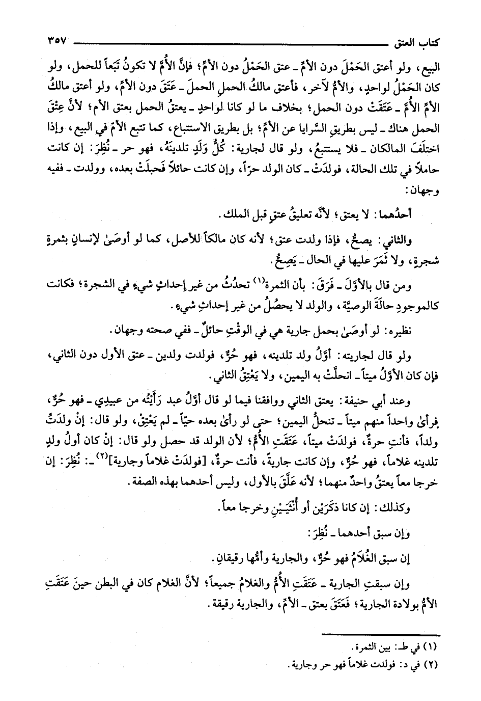البيع، ولو أعتق الحمل دون الأم- عتق الحمل دون الأم؛ فإن الأم لا تكون تبعاً للحمل، ولو كان الحمل لواحد، والأم لآخر، فأعتق مالك الحمل الحمل- عتق دون الأم، ولو أعتق مالك الأم الأم- عتقت دون الحمل؛ بخلاف ما لو كانا لواحد- يعتق الحمل بعتق الأم؛ لأن عتق الحمل هناك- ليس بطريق السرايا عن الأم؛ بل بطريق الاستتباع، كما تتبع الأم في البيع، وإذا اختلف المالكان- فلا يستتبع، ولو قال لجارية: كل ولد تلدينه، فهو حر- نظر: إن كانت حاملا في تلك الحالة، فولدت- كان الولد حراً، وإن كانت حائلاً فحبلت بعده، وولدت- ففيه وجهان: