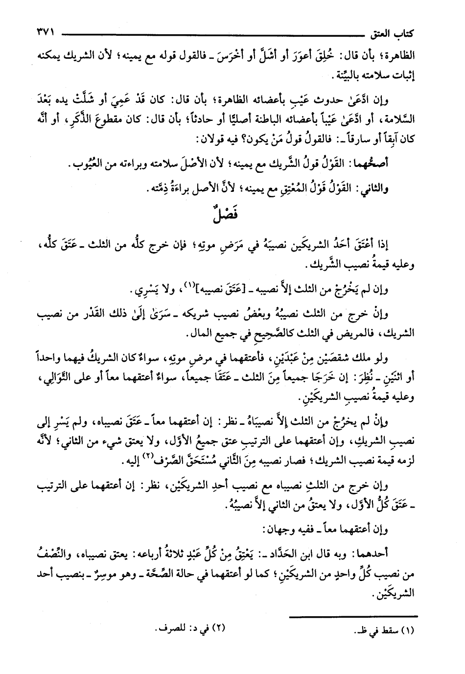 ولو ملك شقصين من عبدين، فأعتقهما في مرض موته، سواء كان الشريك فيهما واحداً أو اثنين- نظر: إن خرجا جميعاً من الثلث- عتقا جميعاً، سواء أعتقهما معاً أو على التوالي، وعليه قيمة نصيب الشريكين.