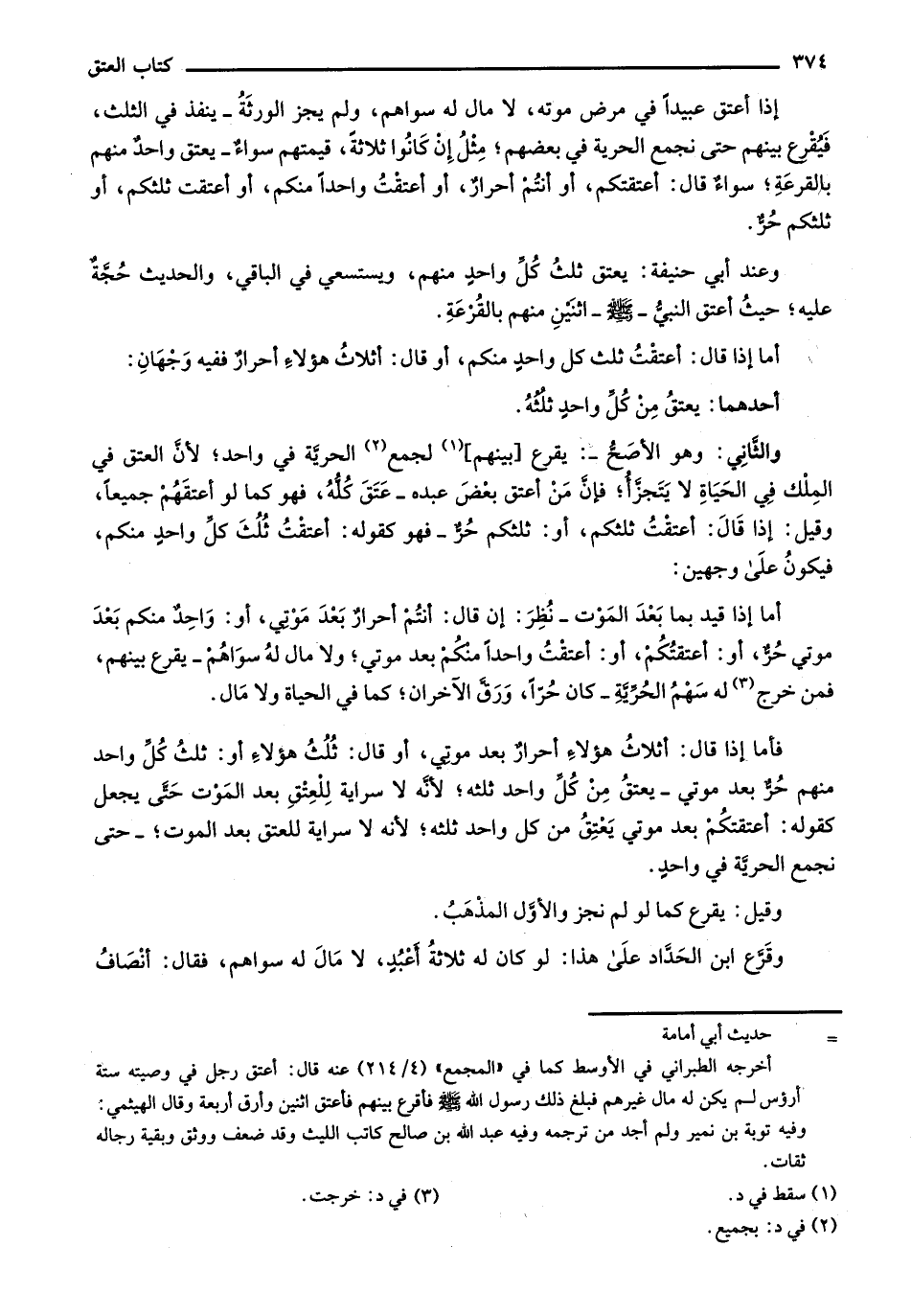 وقرع ابن الحداد على هذا: لو كان له ثلاثة أعبد، لا مال له سواهم، فقال: أنصاف