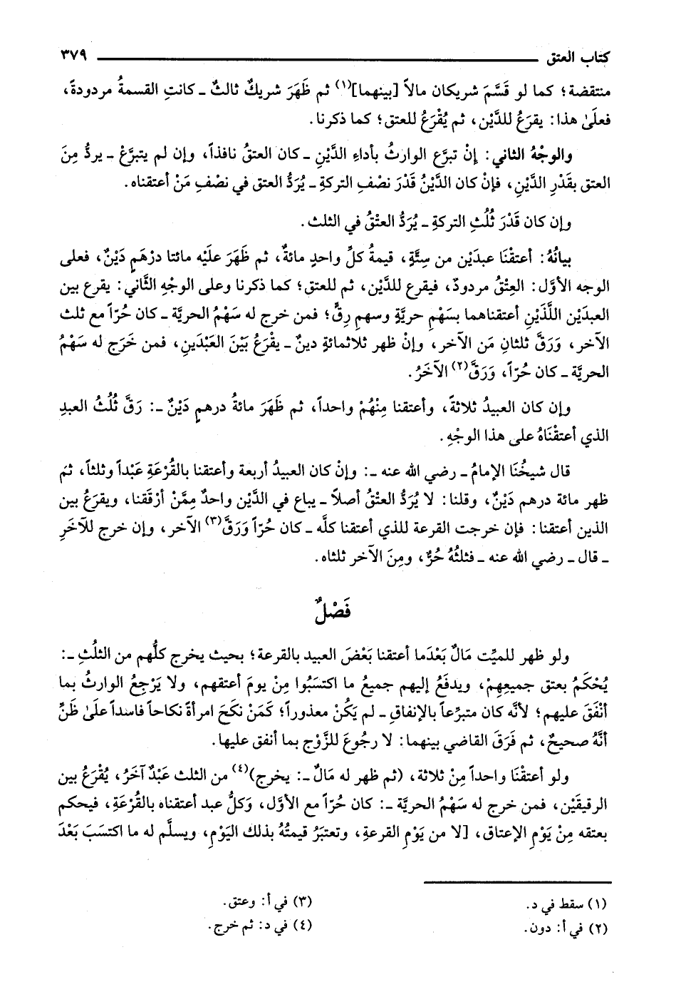 وإن كان العبيد ثلاثة، وأعتقنا منهم واحداً، ثم ظهر مائة درهم دين-: رق ثلث العبد الذي أعتقناه على هذا الوجه.