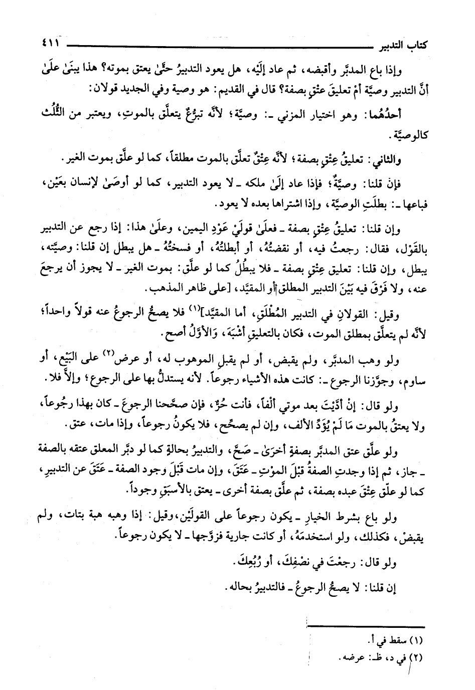 وقيل: القولان في التدبير المطلق، أما المقيد] فلا يصح الرجوع عنه قولاً واحداً، لأنه لم يتعلق بمطلق الموت، فكان بالتعليق أشبه، والأول أصح.