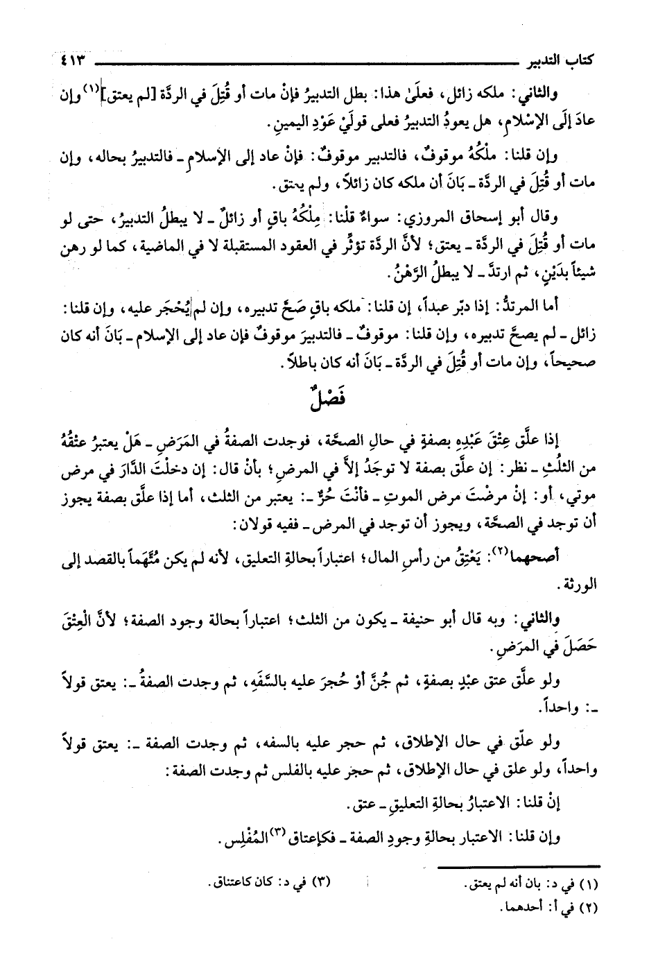 والثاني: ملكه زائل، فعلى هذا: بطل التدبير فإن مات أو قتل في الردة [لم يعتق] وإن عاد إلى الإسلام، هل يعود التدبير فعلى قولي عود اليمين.
