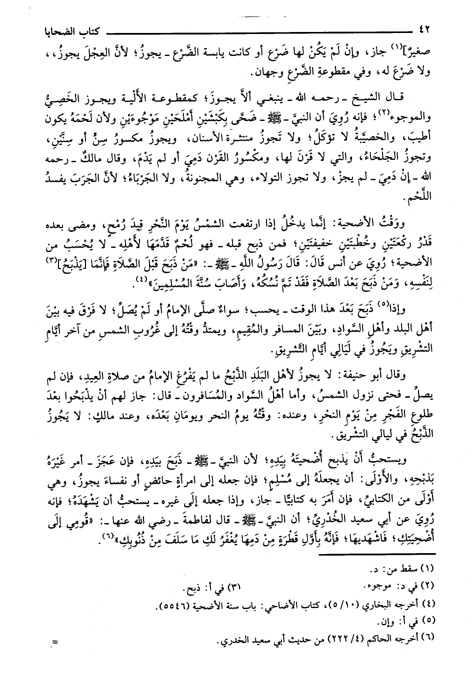 وإذا ذبح بعد هذا الوقت- يحسب؛ سواء صلى الإمام أو لم يصل؛ لا فرق فيه بين أهل البلد وأهل السواد، وبين المسافر والمقيم، ويمتد وقته إلى غروب الشمس من آخر أيام التشريق ويجوز في ليالي أيام التشريق.