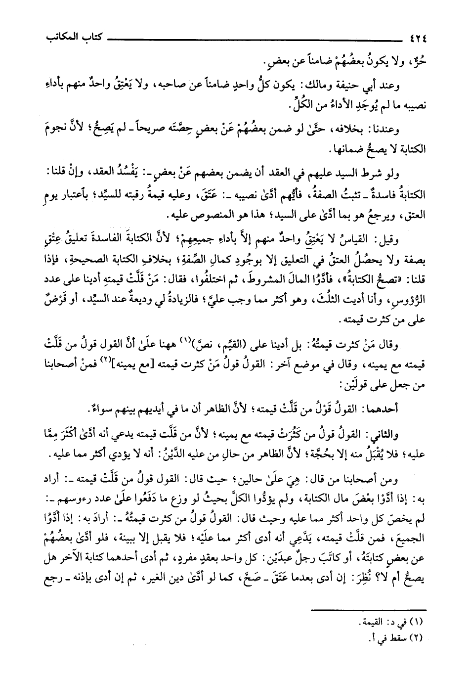 وعندنا: بخلافه، حتى لو ضمن بعضهم عن بعض حصته صريحاً- لم يصح؛ لأن نجوم الكتابة لا يصح ضمانها.