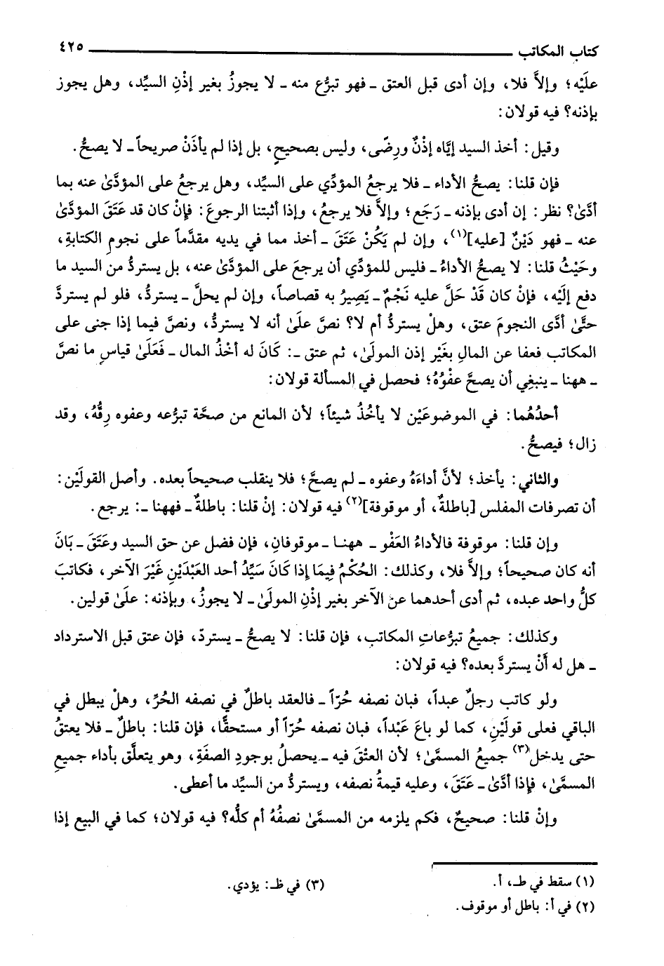 وإن قلنا: موقوفة فالأداء العفو- ههنا- موقوفان، فإن فضل عن حق السيد وعتق- بان أنه كان صحيحاً؛ وإلا فلا، وكذلك: الحكم فيما إذا كان سيد أحد العبدين غير الآخر، فكاتب كل واحد عبده، ثم أدى أحدهما عن الآخر بغير إذن المولى- لا يجوز وبإذنه: على قولين.