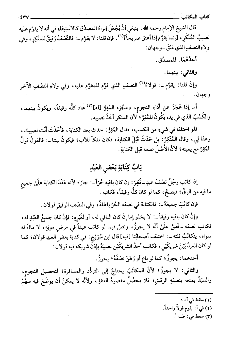 فإن كاتب جميعه-: فالكتابة في نصفه الحر باطلة، وفي النصف الرقيق قولان.