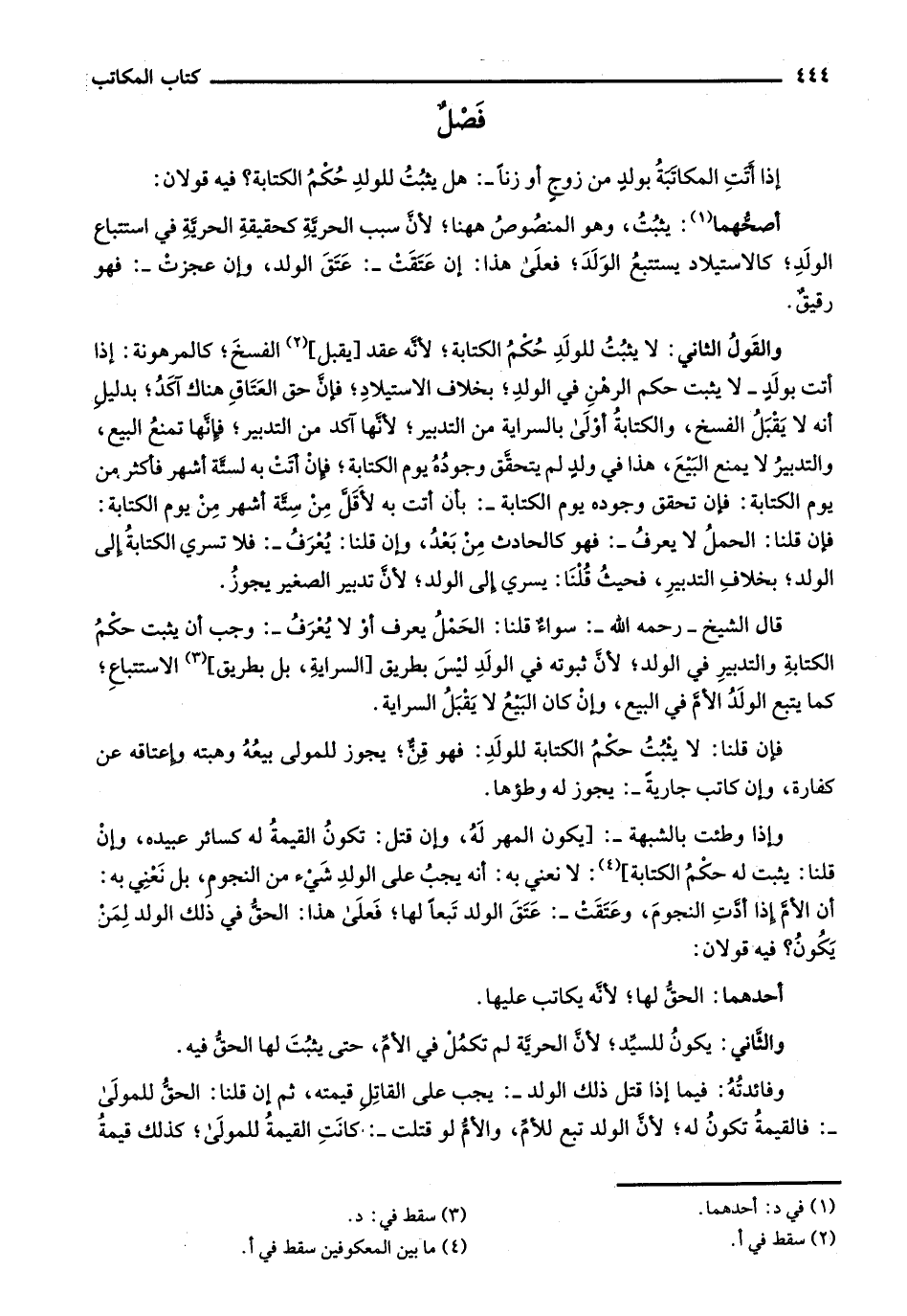 إذا أتت المكاتبة بولد من زوج أو زناً-: هل يثبت للولد حكم الكتابة؟ فيه قولان: