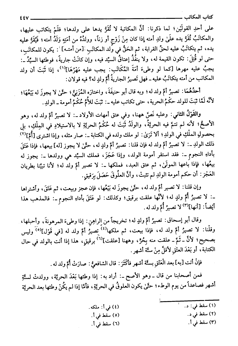 وقال أبو إسحاق: تصير أم ولد له، تخريجاً من الراهن: إذا وطئ المرهونة، وأحبلها، وقلنا: لا تصير أم ولد له، فإذا بيعت، ثم ملكها تصير أم ولد له [في قول] وليس بصحيح؛ لأن- ثم - علقت منه بحر، وههنا [علقت] برقيق، هذا إذا أتت بالولد في حال الكتابة، أو بعد العتق لأقل من ستة أشهر.