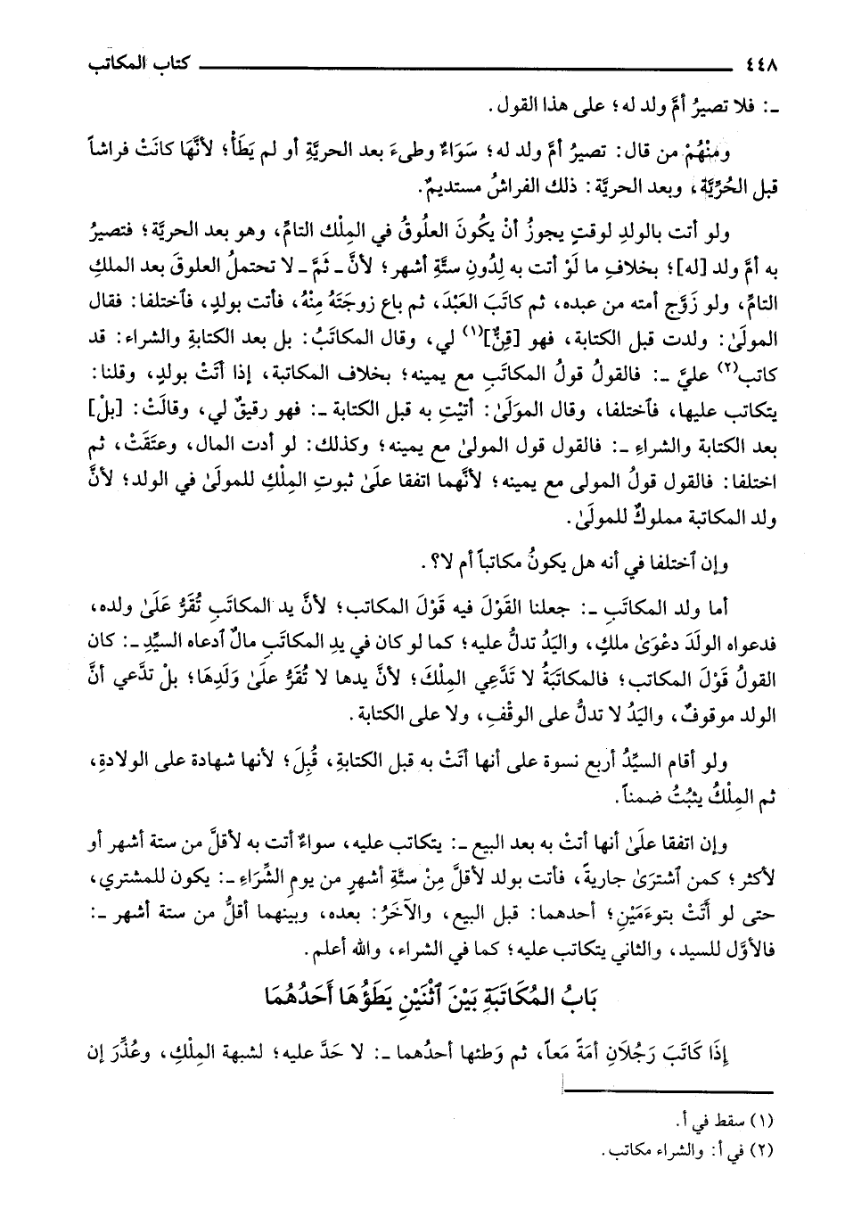 أما ولد المكاتب-: جعلنا القول فيه قول المكاتب؛ لأن يد المكاتب تقر على ولده، فدعواه الولد دعوى ملك، واليد تدل عليه؛ كما لو كان في يد المكاتب مال ادعاه السيد-: كان القول قول المكاتب؛ فالمكاتبة لا تدعي الملك؛ لأن يدها لا تقر على ولدها؛ بل تدعي أن الولد موقوف، واليد لا تدل على الوقف، ولا على الكتابة.