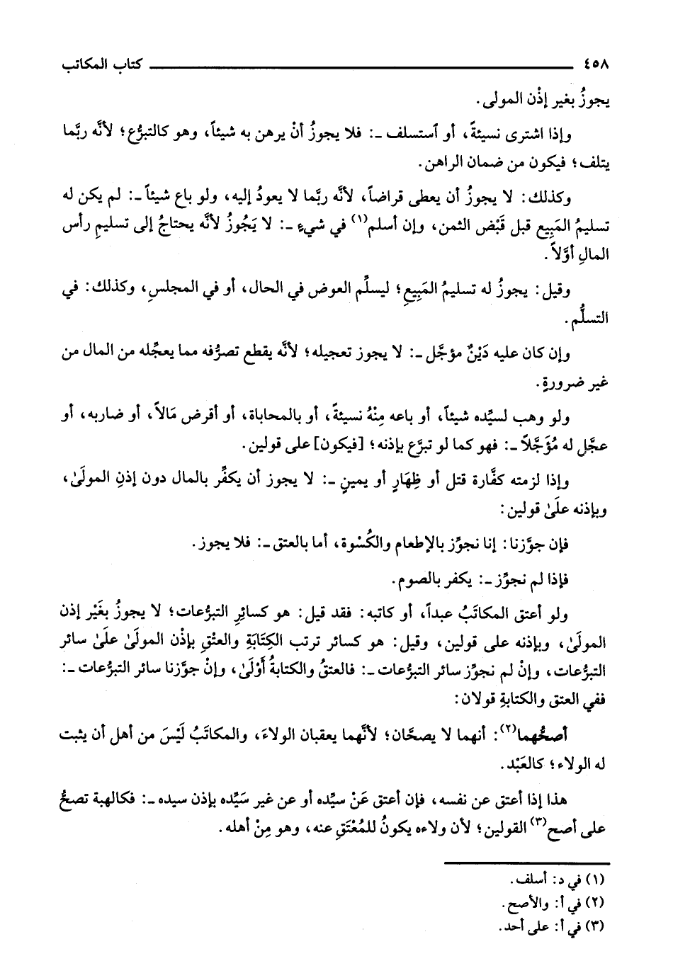 وإذا لزمته كفارة قتل أو ظهار أو يمين: لا يجوز أن يكفر بالمال دون إذن المولى، وبإذنه على قولين:
