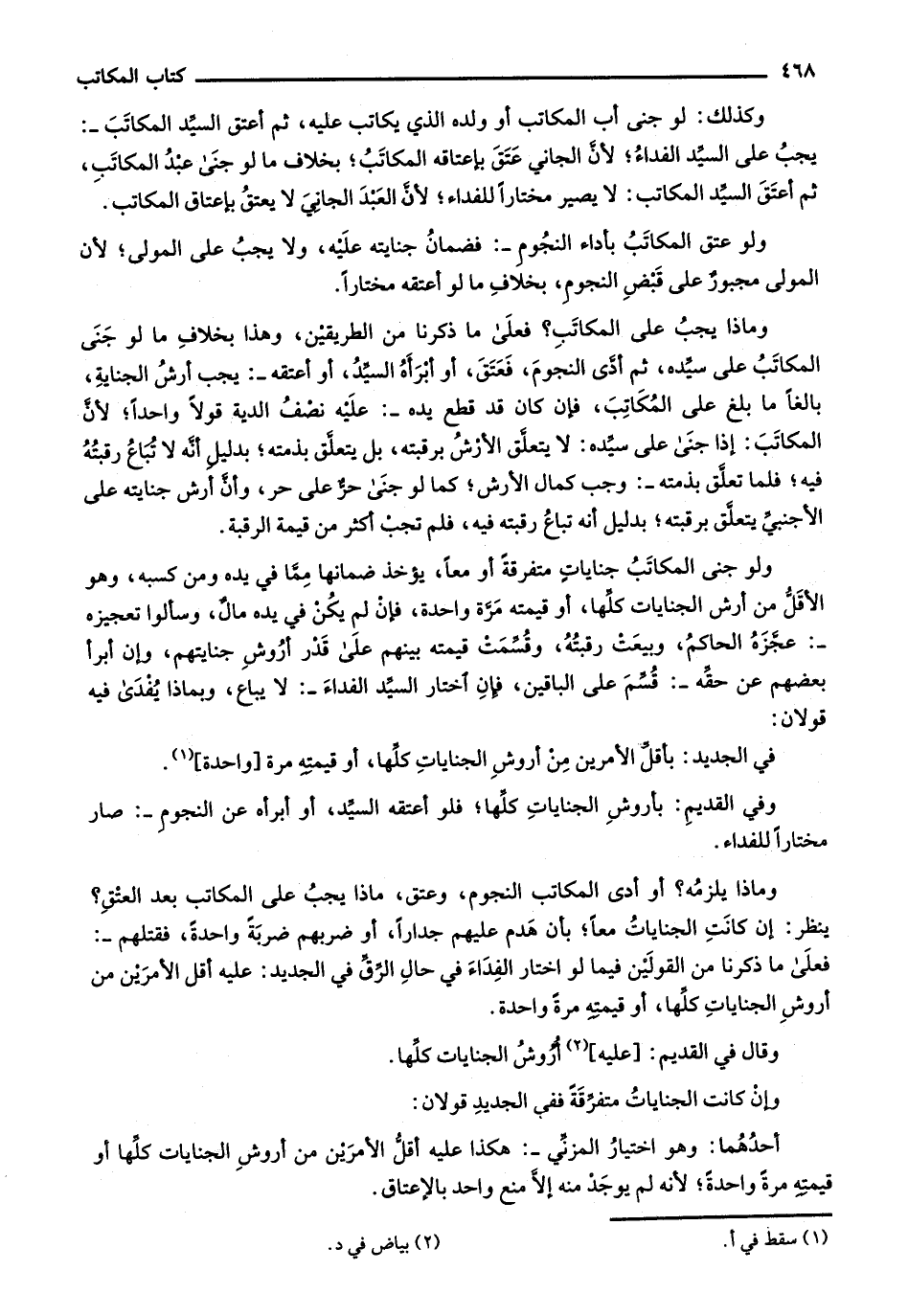وفي القديم: بأروش الجنايات كلها؛ فلو أعتقه السيد، أو أبرأه عن النجوم: صار مختاراً للفداء.