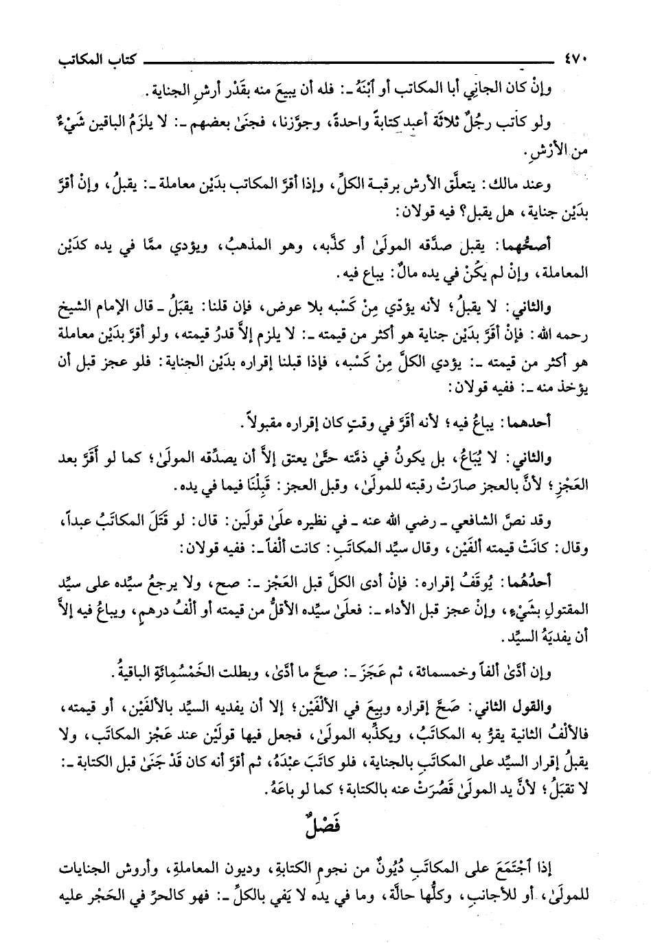 وعند مالك: يتعلق الأرش برقبة الكل، وإذا أقر المكاتب بدين معاملة: يقبل، وإن أقر بدين جناية، هل يقبل؟ فيه قولان: