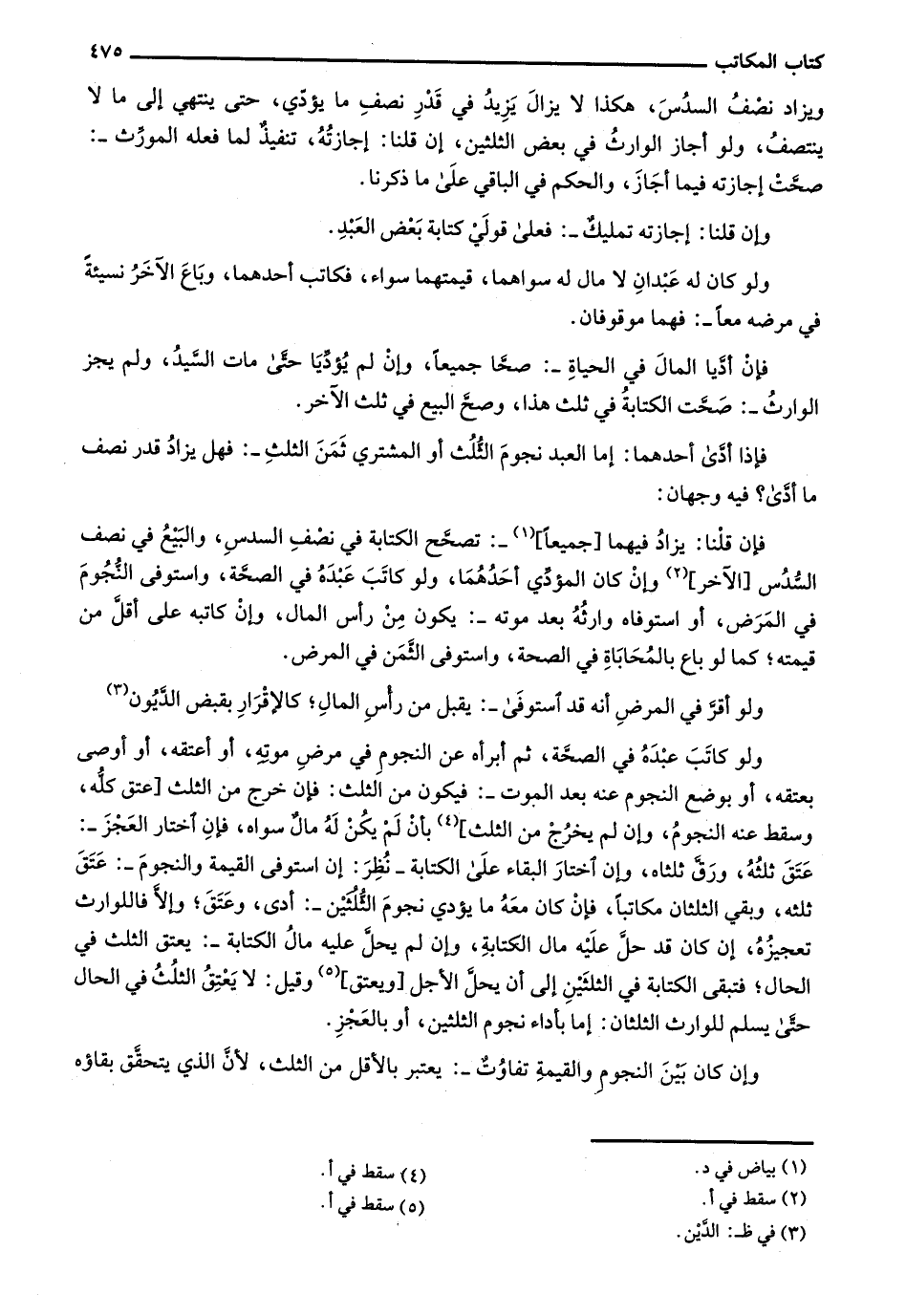فإن قلنا: يزاد فيهما [جميعاً]: تصحح الكتابة في نصف السدس، والبيع في نصف السدس [الآخر] وإن كان المؤدي أحدهما، ولو كاتب عبده في الصحة، واستوفى النجوم في المرض، أو استوفاه وارثه بعد موته: يكون من رأس المال، وإن كاتبه على أقل من قيمته؛ كما لو باع بالمحاباة في الصحة، واستوفى الثمن في المرض.
