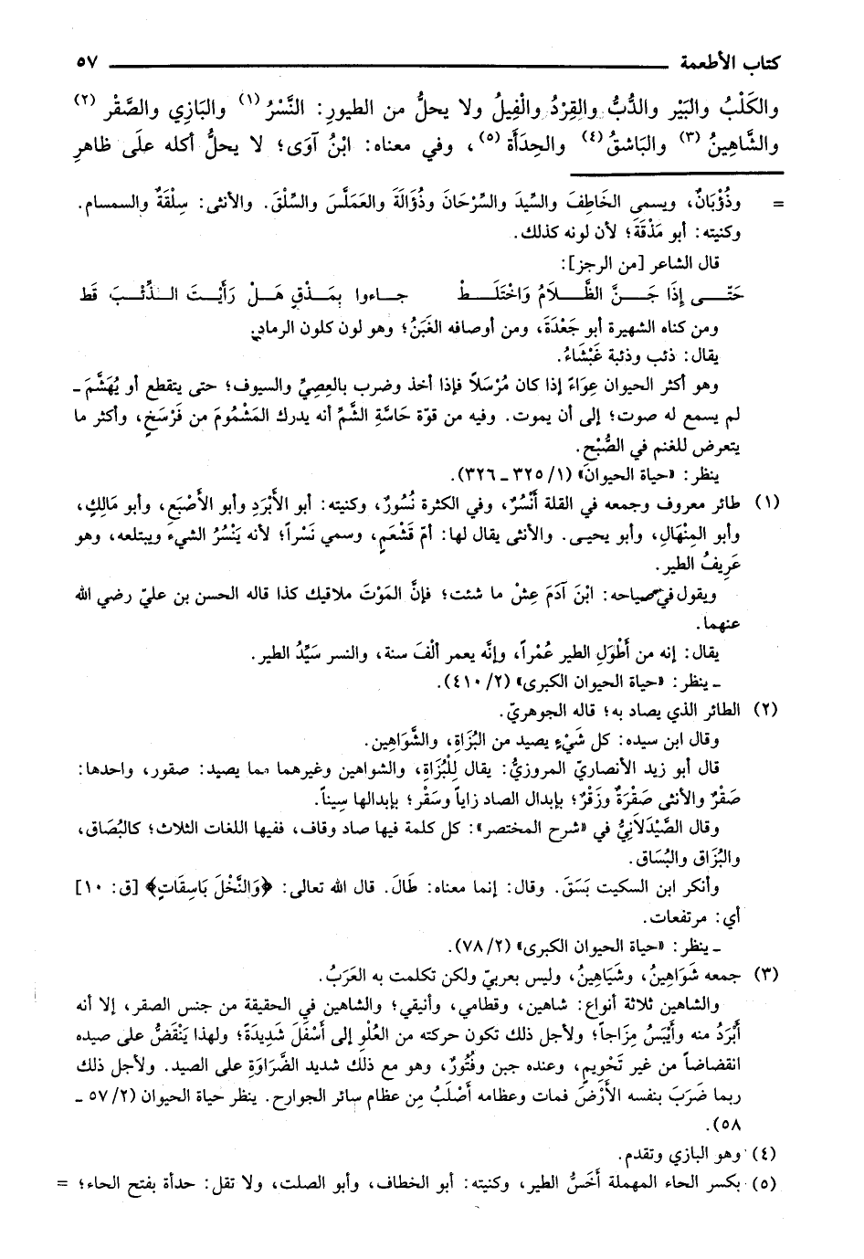 والكلب والبير والدب والقرد والفيل ولا يحل من الطيور: النسر والبازي والصقر والشاهين والباشق والحدأة، وفي معناه: ابن آوى؛ لا يحل أكله على ظاهر