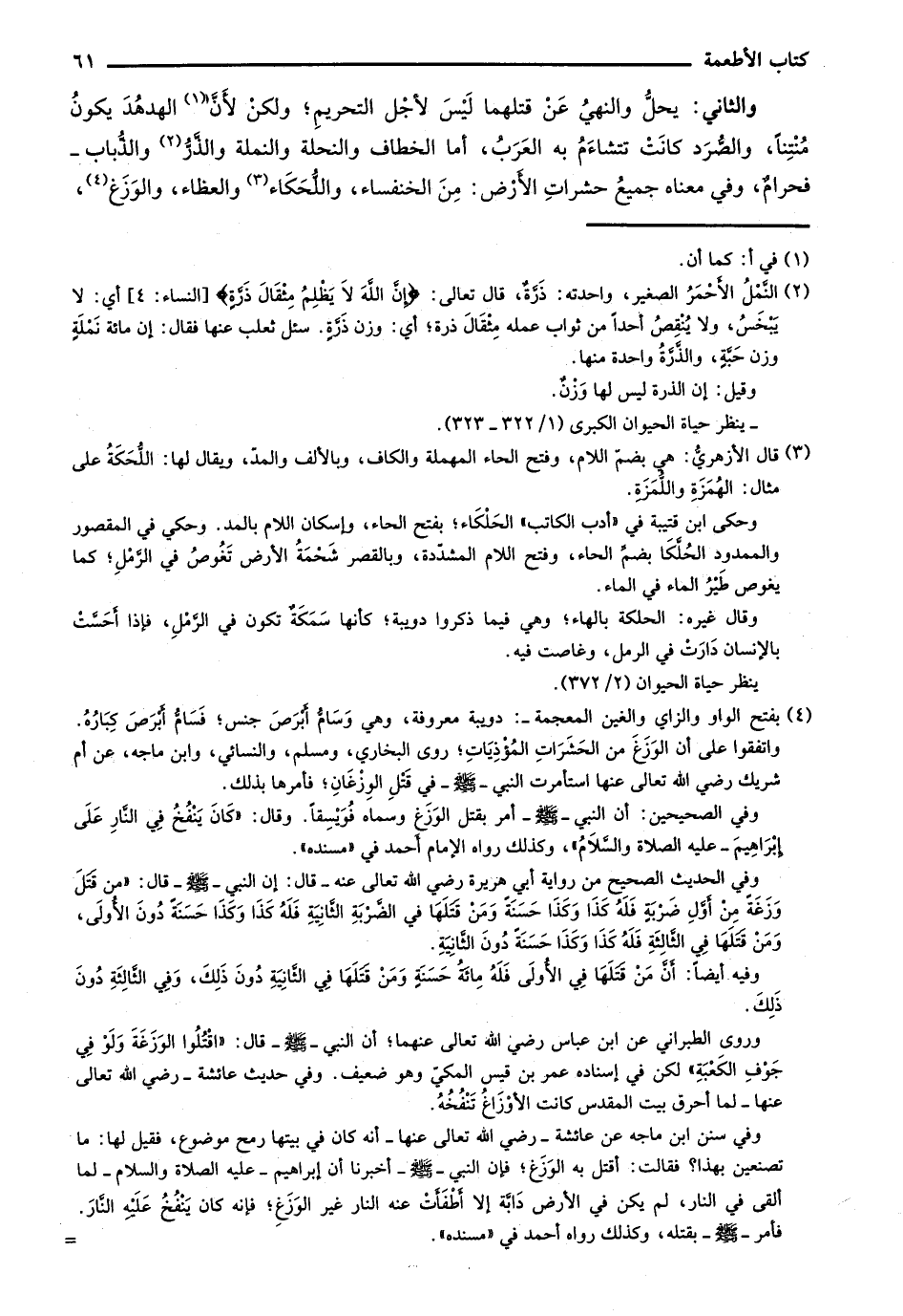 والثاني: يحل والنهي عن قتلهما ليس لأجل التحريم؛ ولكن لأن الهدهد يكون منتناً، والصرد كانت تتشاءم به العرب، أما الخطاف والنحلة والنملة والذر والذباب- فحرام، وفي معناه جميع حشرات الأرض: من الخنفساء، واللحكاء والعظاء، والوزغ،