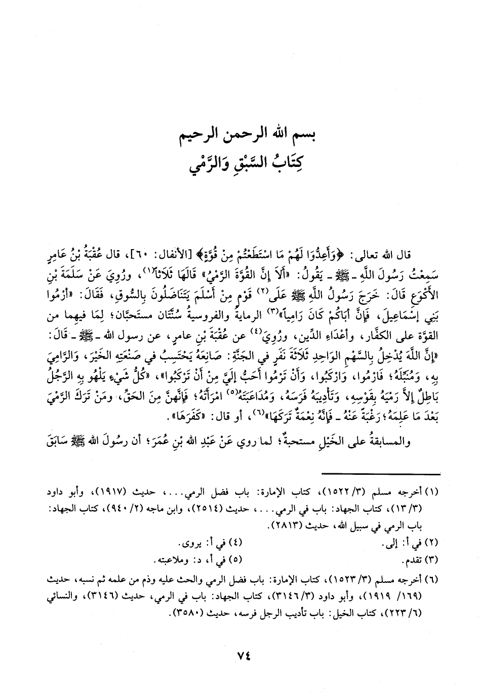 كتاب السبق والرمي