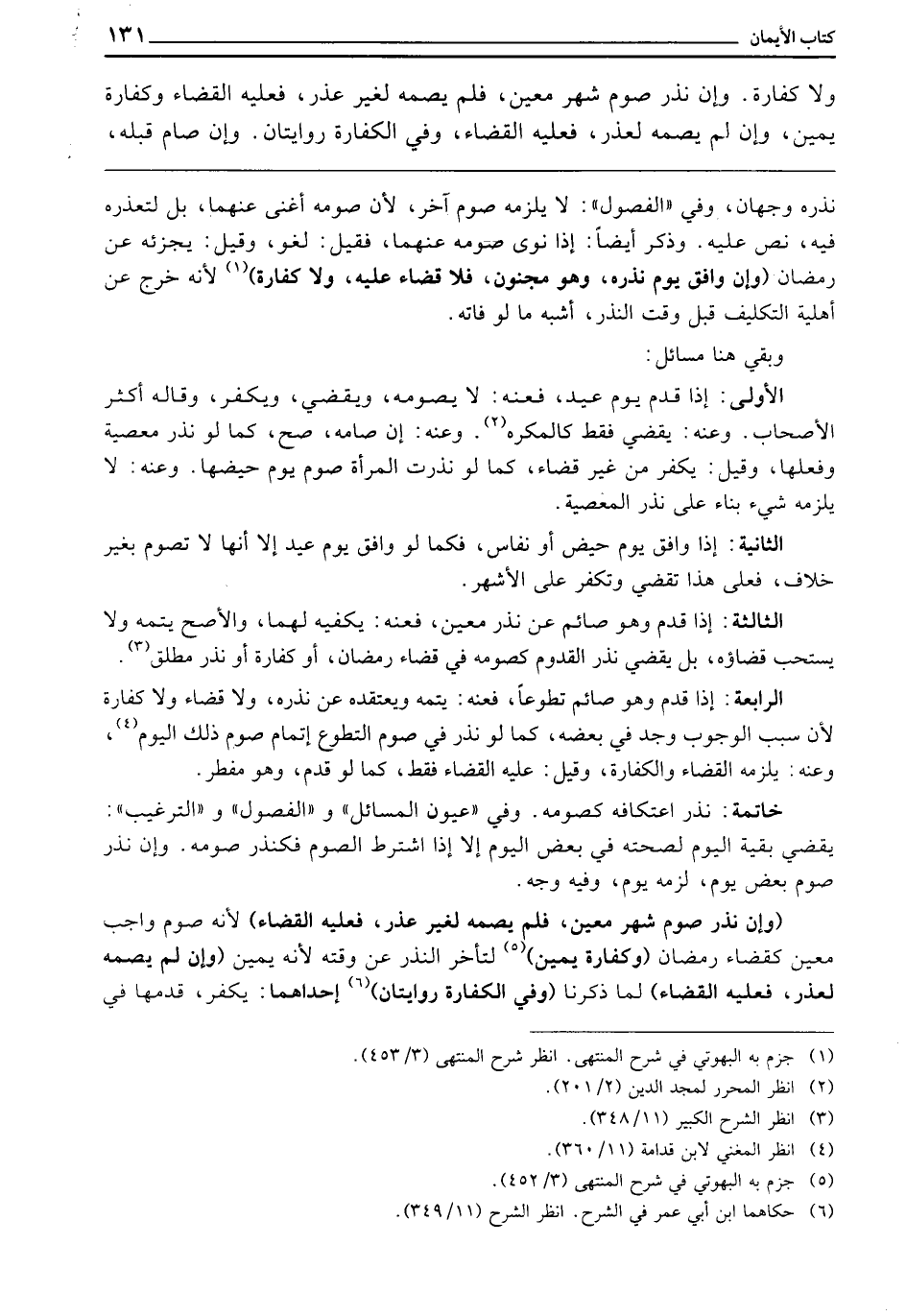 (وَإِنْ نَذَرَ صَوْمَ شَهْرٍ مُعَيَّنٍ فَلَمْ يَصُمْهُ لِغَيْرِ عُذْرٍ فَعَلَيْهِ الْقَضَاءُ) لِأَنَّهُ صَوْمٌ وَاجِبٌ مُعَيَّنٌ، كَقَضَاءِ رَمَضَانَ (وَكَفَّارَةُ يَمِينٍ) لِتَأَخُّرِ النَّذْرِ عَنْ وَقْتِهِ، لِأَنَّهُ يَمِينٌ (وَإِنْ لَمْ يَصُمْهُ لِعُذْرٍ فَعَلَيْهِ الْقَضَاءُ) لِمَا ذَكَرْنَا (وَفِي الْكَفَّارَةِ رِوَايَتَانِ) إِحْدَاهُمَا: يُكَفِّرُ، قَدَّمَهَا فِي