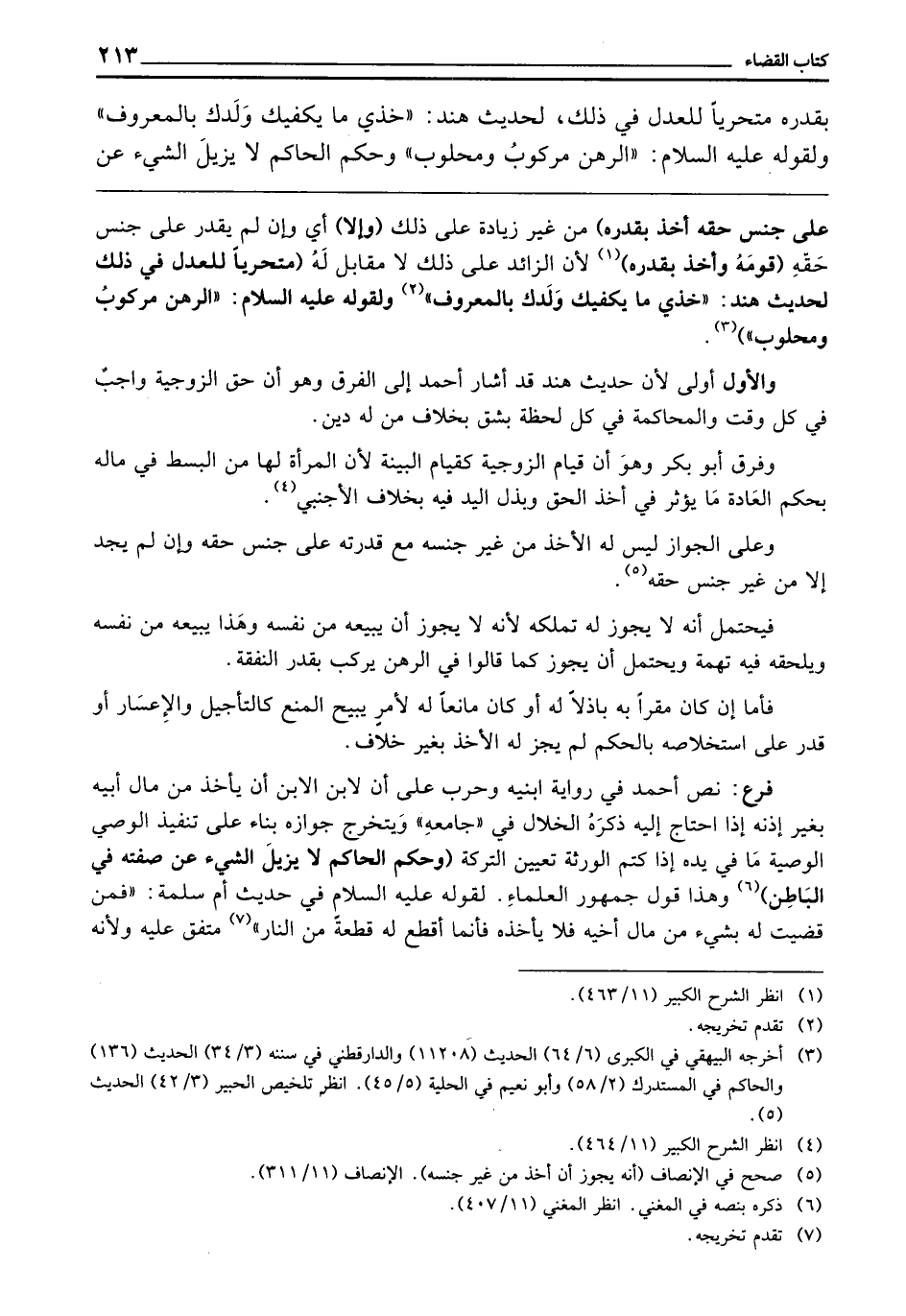 بِقَدْرِه مُتَحَرِّيًا لِلْعَدْلِ فِي ذَلِكَ، لِحَدِيثِ هِنْدَ: «خُذِي مَا يَكْفِيكِ وَوَلَدَكِ بِالْمَعْرُوفِ» ، وَلِقَوْلِهِ - عَلَيْهِ السَّلَامُ -: «الرَّهْنُ مَرْكُوبٌ وَمَحْلُوبٌ» .